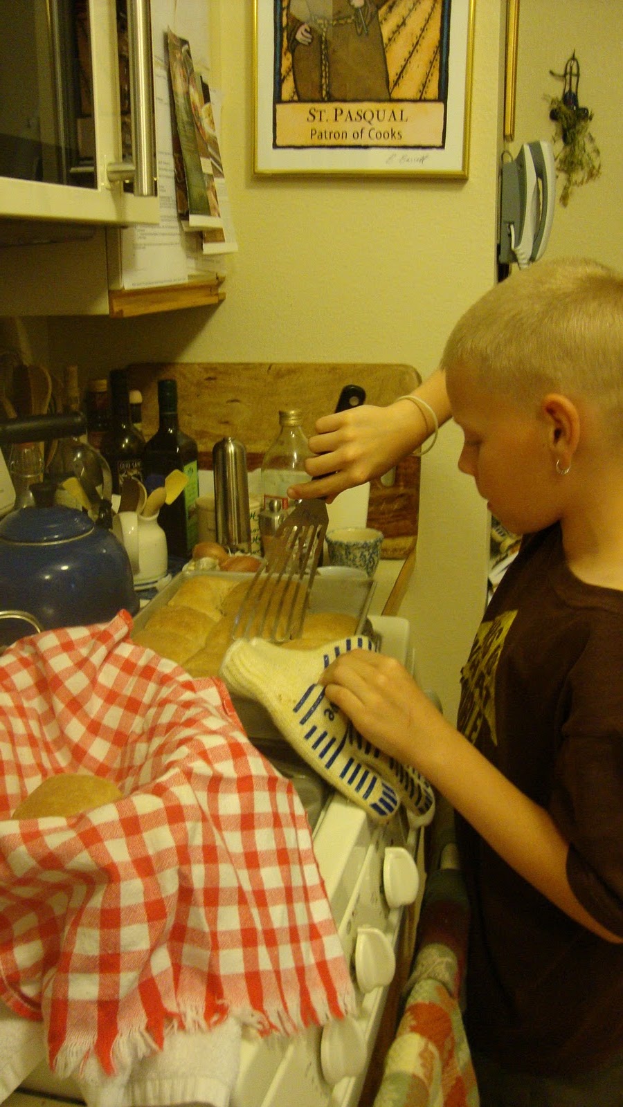 Let rise another hour or so (stick it in a warm oven for a couple of minutes if you want to “push” the rise), covered by a heavy towel or a buttered piece of plastic wrap.