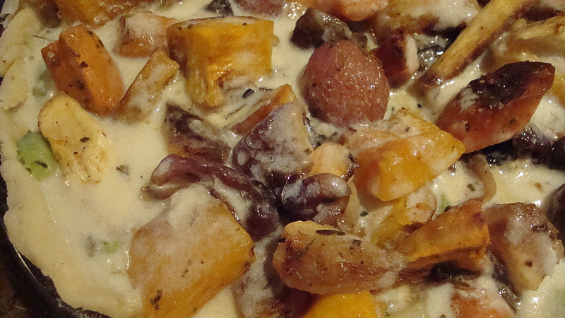 2 cups chopped roasted root vegetables (carrots, sweet potatoes, parsnips, potatoes, winter squash, etc)