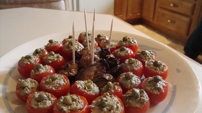 | Dave’s Tomatoes with Smoked Oysters, Capers, and Horseradish |