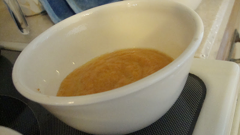 | Leftover pumpkin pie filling–in the microwave for a quick dessert. |