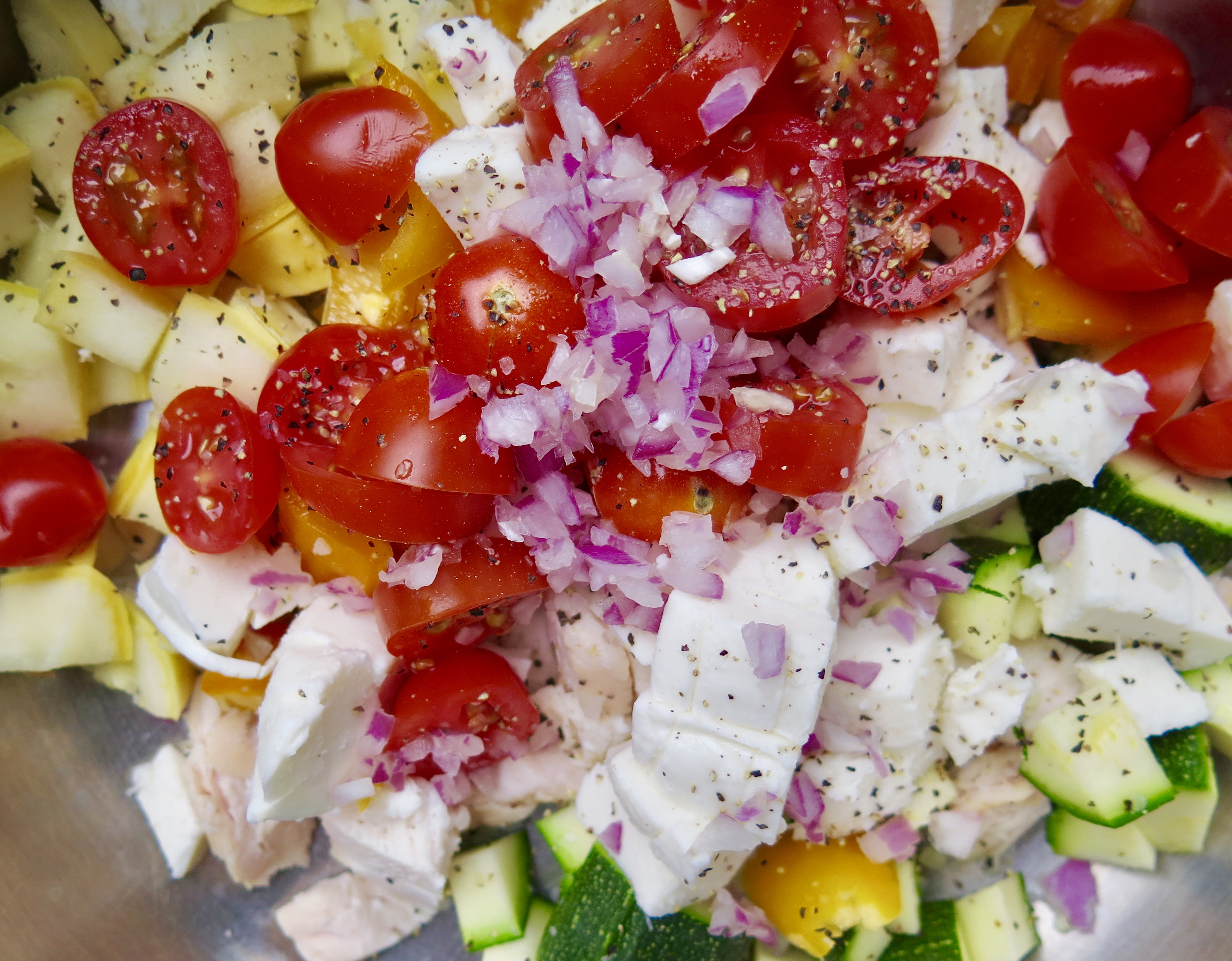 - 1/2 small yellow (summer) squash, trimmed and diced into 1/2-inch pieces