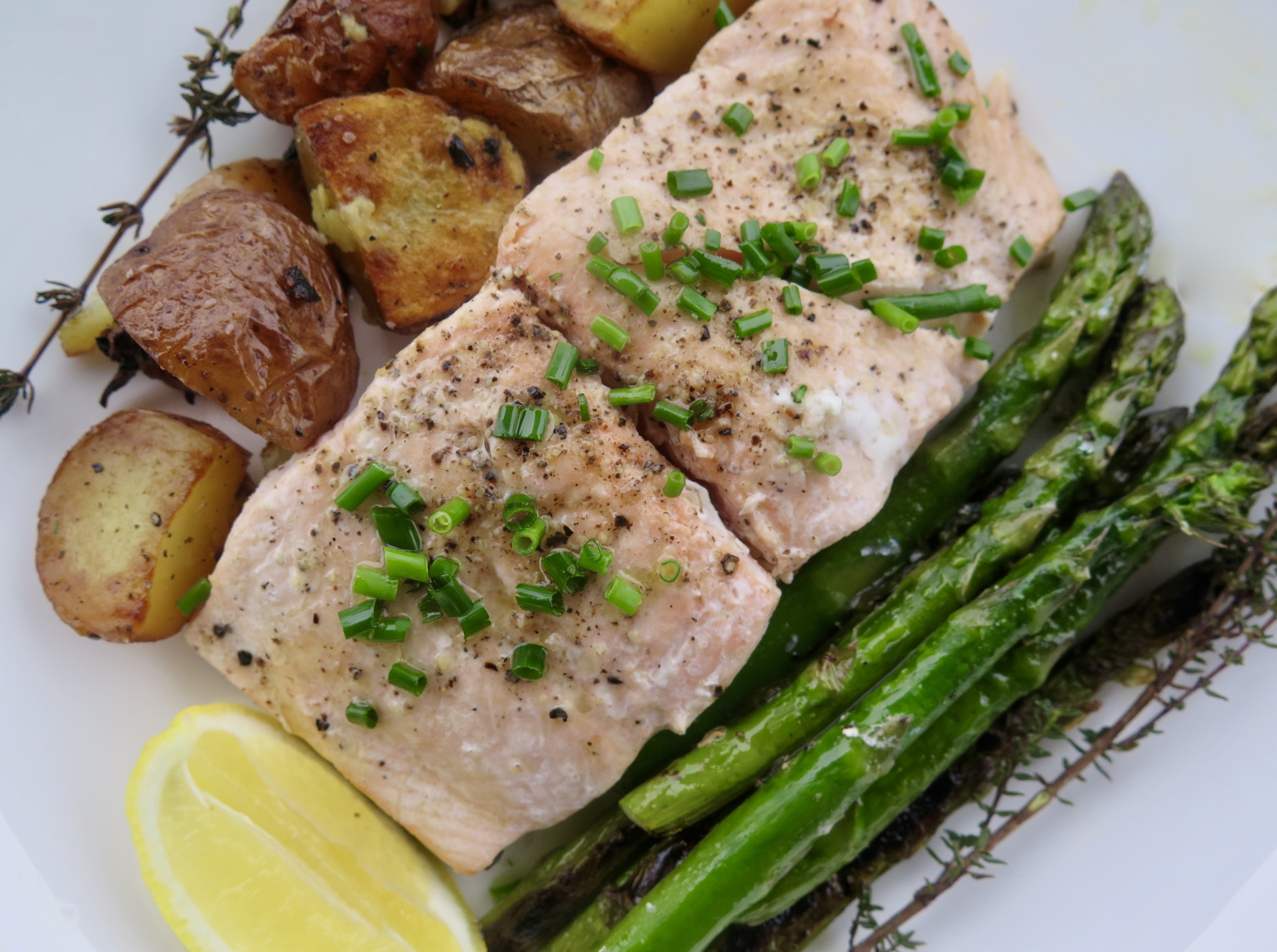 One-Pan Salmon with Potatoes and Asparagus (not a sheet pan, but all in one pan)