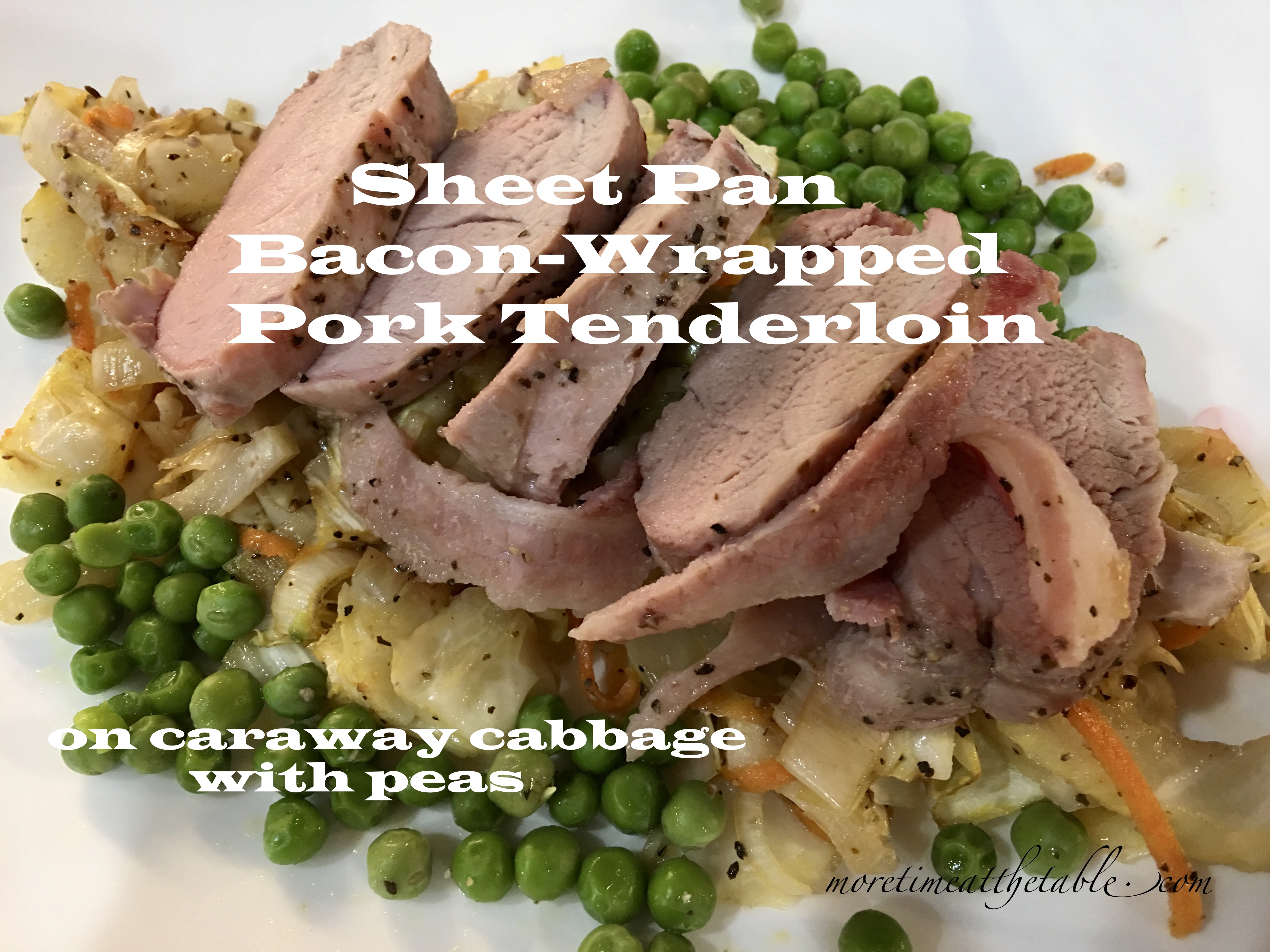 SHEET PAN DINNER: BACON-WRAPPED PORK TENDERLOIN ON CABBAGE + VEGETABLES WITH CARAWAY