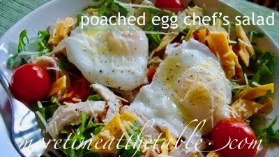 TIP: This recipe serves one; it’s easily doubled, tripled, or quadrupled. A simple, filling dinner or summer lunch that’s quickly on the table and ready to eat. Have a slice or two of ham or turkey and some cheese, but not enough to feed everyone? Try Poached Egg Chef’s Salad. It’s great without the meat, too.