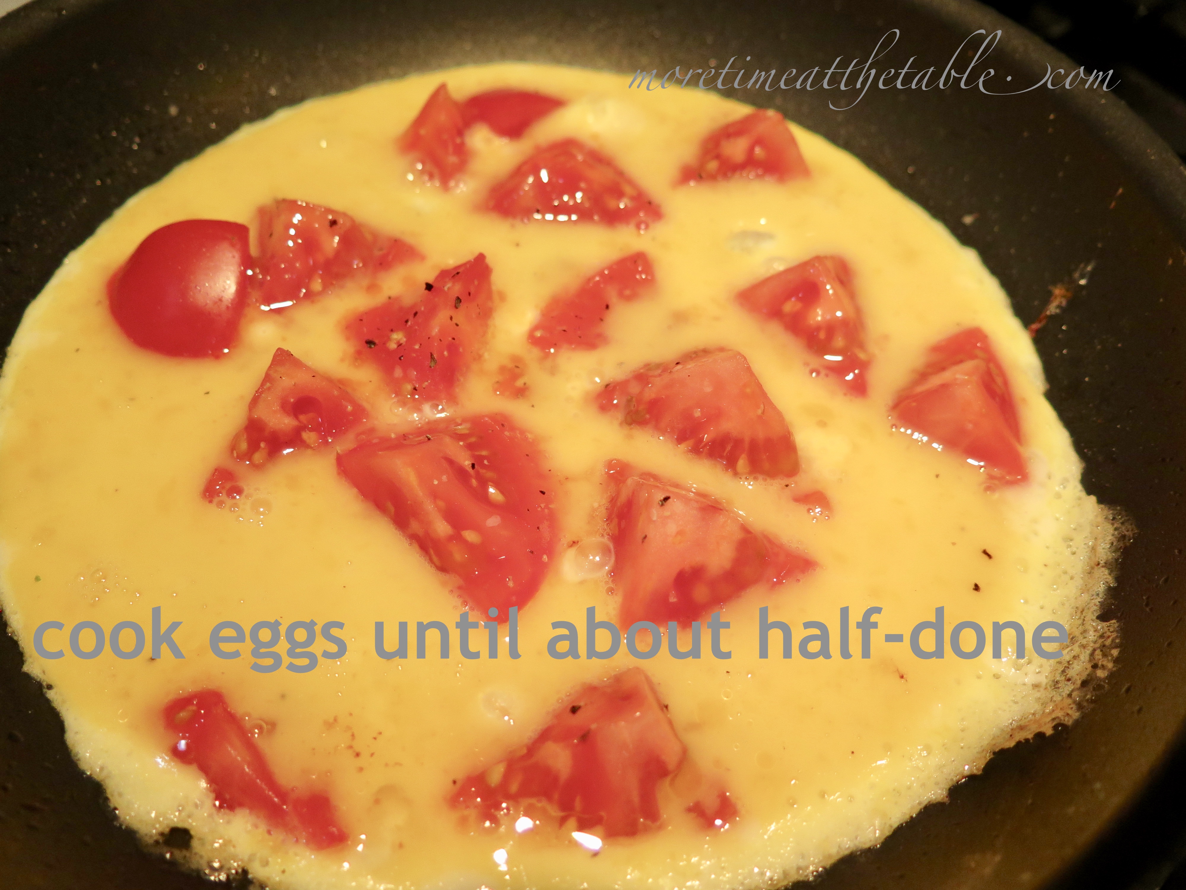 Tomatoes are one of my favorite additions–especially when tomatoes are at their peak. When they’re not, you can sauté them up a little first….