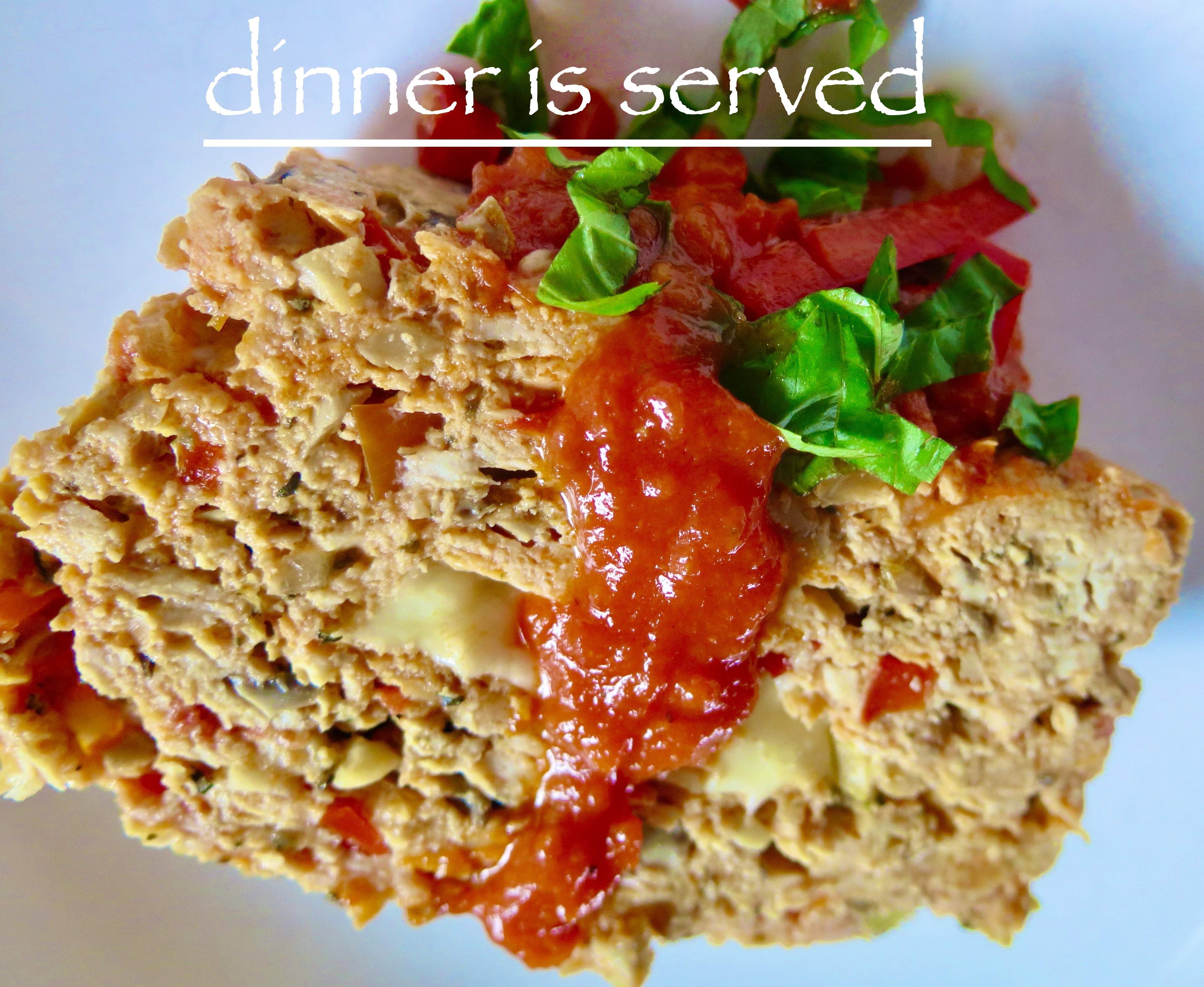 Lately, though, I’m preoccupied with better uses for underemployed ground chicken and I kept dreaming about a chicken version of Lori’s meatloaf. Maybe it could boast similar, but not the same flavors. I began thinking marinara. Mozzarella. Basil. Oregano. This was starting to sound kinda like pizza meatloaf, though I didn’t know that right away. The thing about pizza — and I’ll give you pizza is my favorite food — is that while it’s not necessarily the nutritional disaster some folks claim, it’s often one whole H-E-L-L of a lot of calories and fat for the nutrition you do get. Which is why I love veggie pizza featuring less cheese on whole wheat crust.
