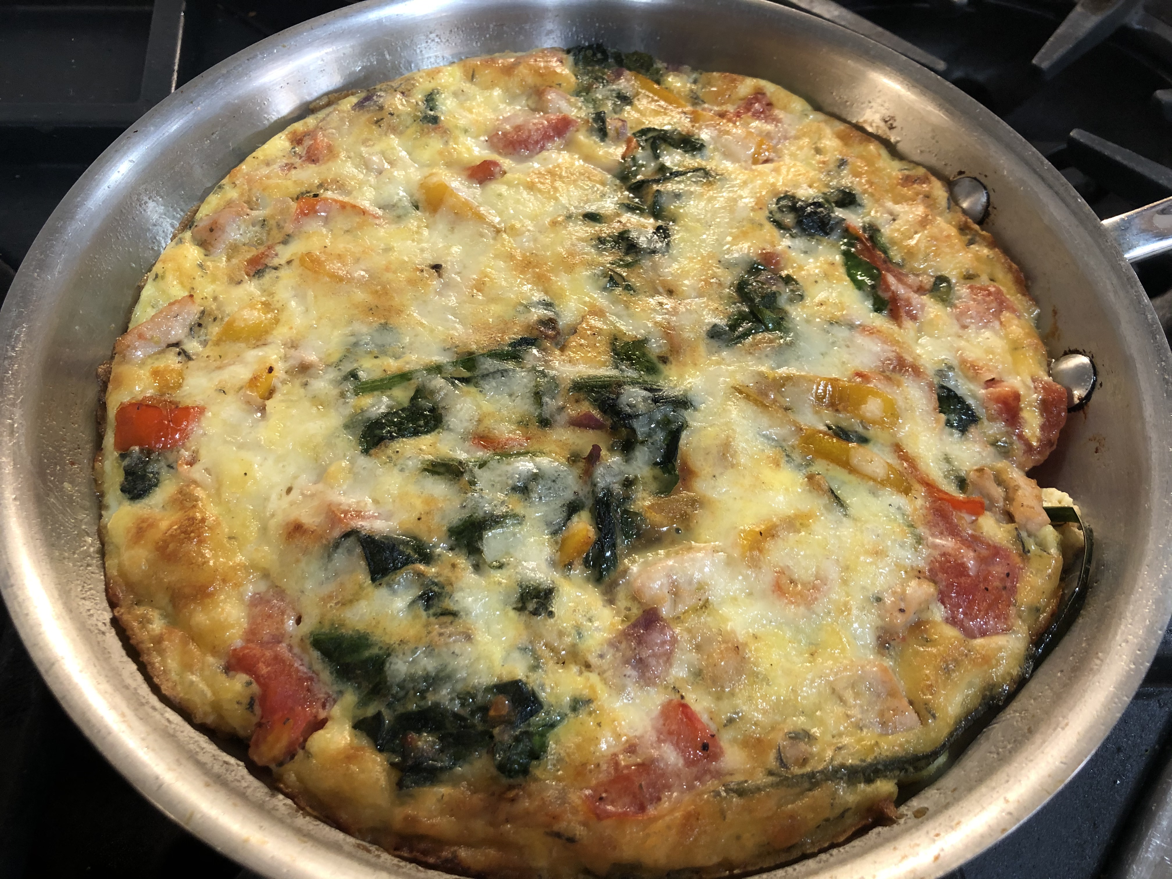ONLY TWO OF YOU? Make the whole meal and, if you like, warm the rest of the vegetables for the next day’s lunch–feels a little like bean soup if you add some wine and let it simmer for a few. (See recipe.) Use the other servings of pork for sandwiches or tacos–or as Dave and I did, in a frittata for Sunday brunch: