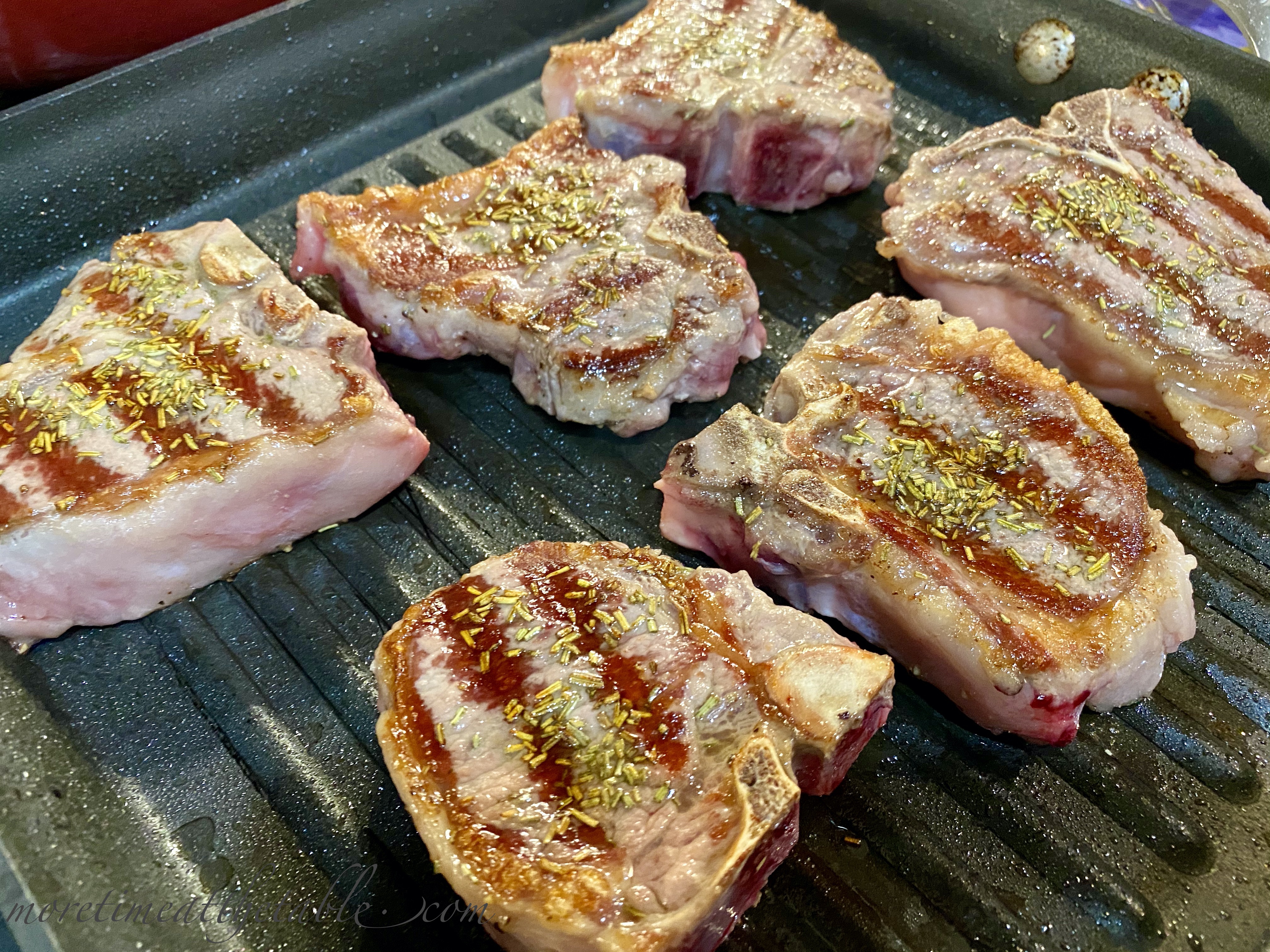 My mom always said, “If meat has a bone, you can pick it up with your fingers.” So use a knife and fork to start, but then grab them up and enjoy every last morsel. I think that’s how God meant you to eat chops. If you’ve company at the table, be the first to woman handle your lamb so guests feel they can do likewise. Add a couple of paper napkins to each table setting just in case.