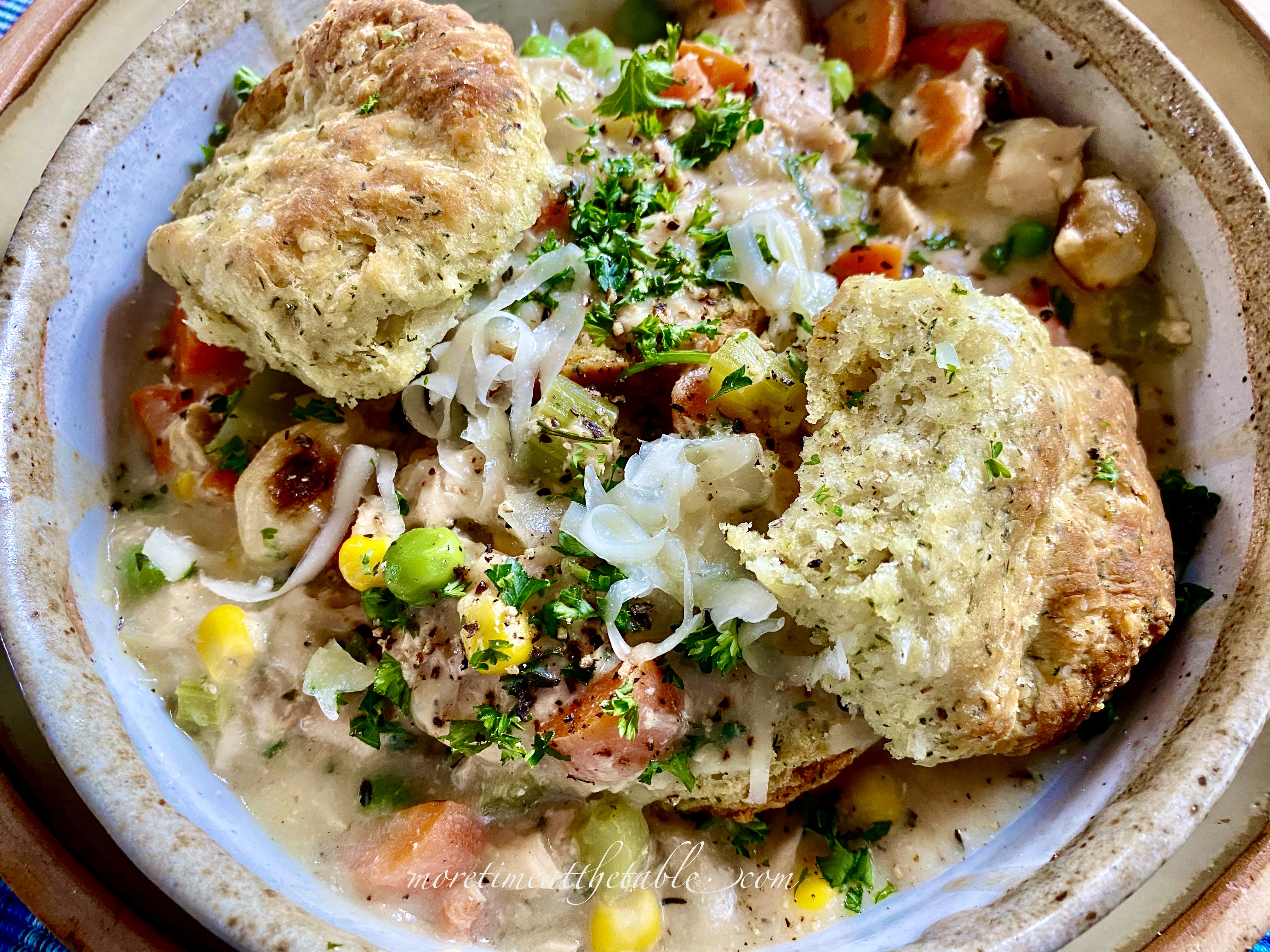 CHANGE IT UP: Add or swap in chopped red bell pepper or jarred pimentos, sliced olives, minced jalapeño, diced potato or sweet potato, fennel, toasted sliced almonds, sliced mushrooms; cooked diced asparagus, white beans, green beans, leeks, or zucchini; goat cheese, roasted and diced green chiles, or tiny cooked pasta. You could choose to serve the stew over cooked rice or quinoa instead of biscuits. If adding a lot more vegetables, you may need to increase the liquid by a cup, the flour by a tablespoon or so, and the seasonings to taste.