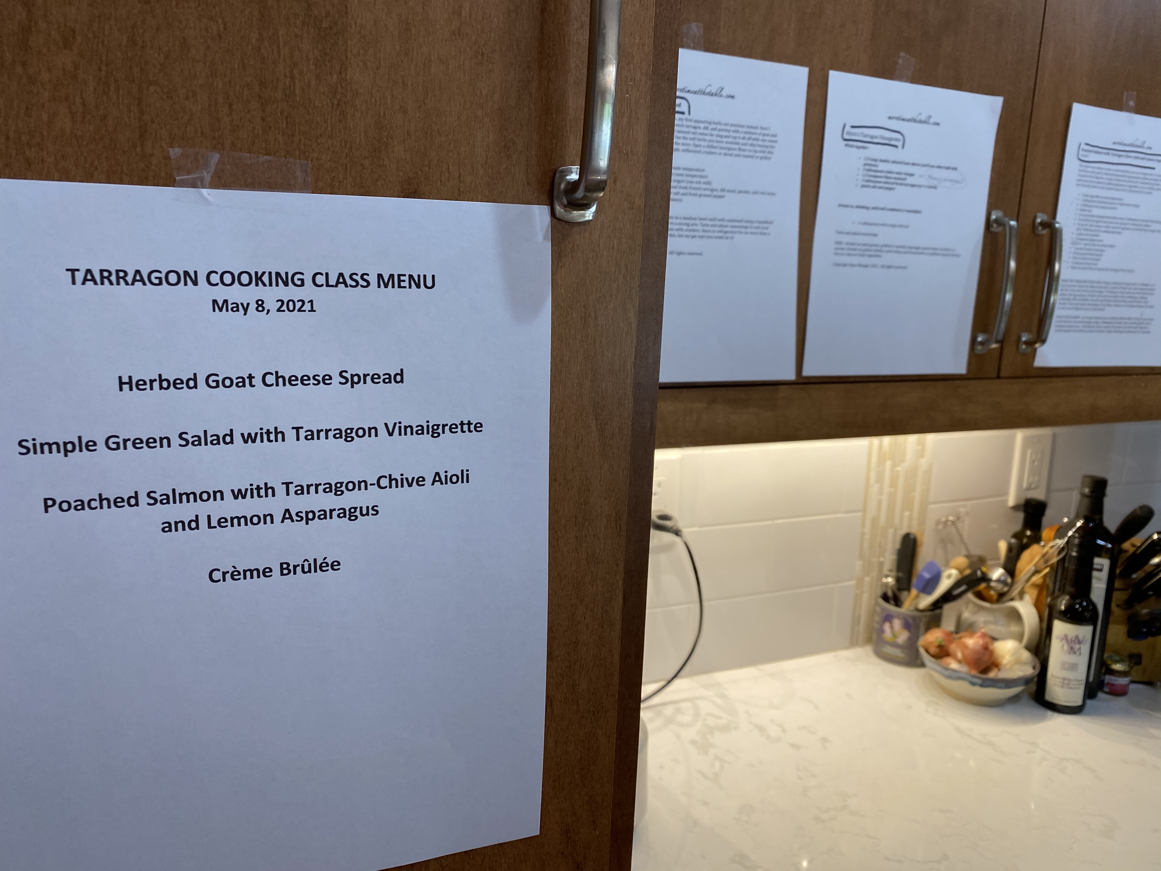 Check out the main course for the French Tarragon class, Poached Salmon with Tarragon-Chive Aioli and Lemon Asparagus here, posted last week. (I have one recipe left to share from the class; stay tuned!)