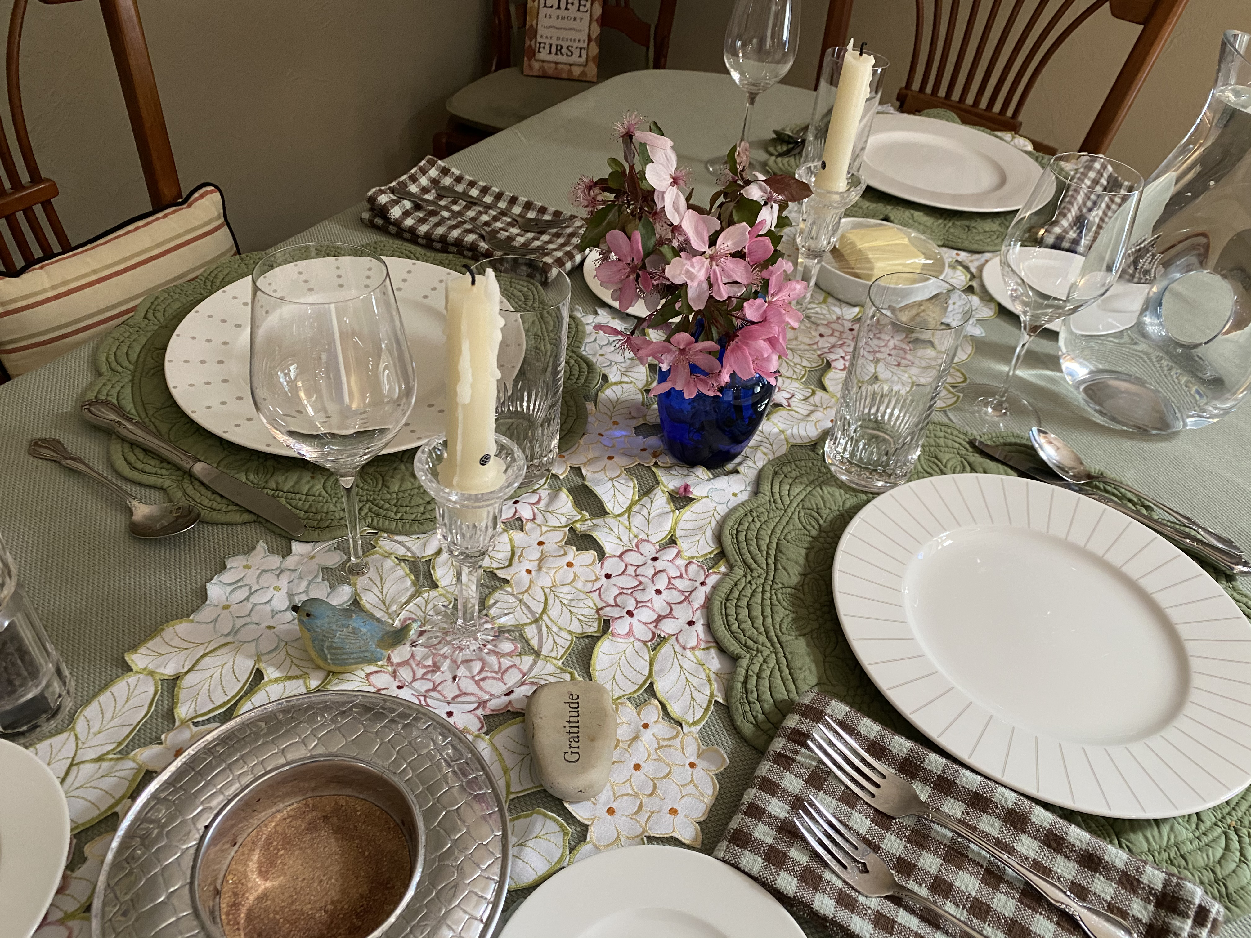 If you read the blog last week, you’ll remember our gorgeous ornamental crab tree bloomed. Saturday morning, as I readied the kitchen for the Tarragon Cooking Class, the wind began to kick up and while it didn’t decimate the tree, it looked like it was snowing in our front yard…