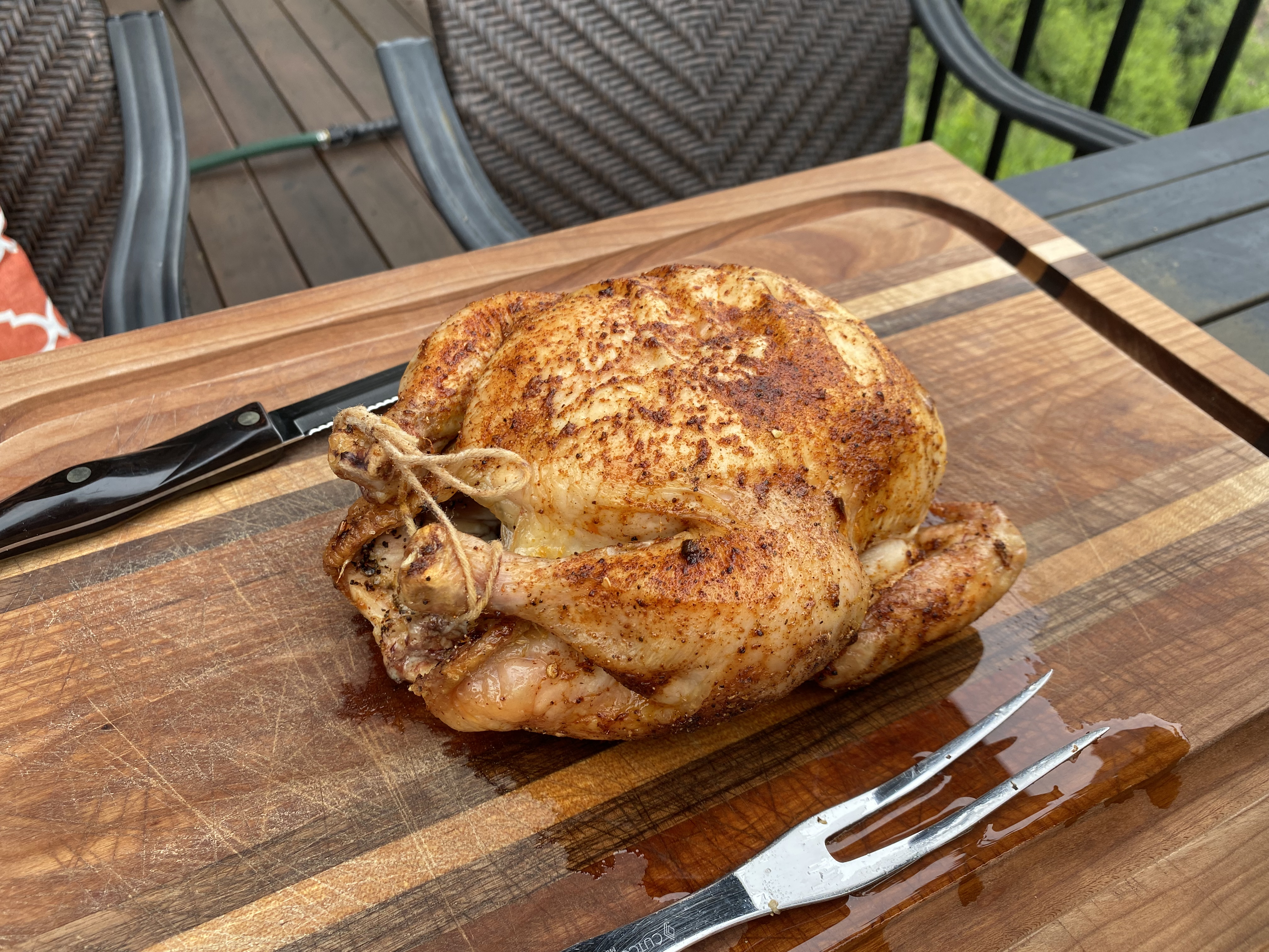 BELOW: We combined birthday and anniversary gifts this year and splurged on a new Traeger smoker. Quite different than our old Oklahoma Joe (wood burning), the Traeger — as you might know —burns wood pellets, making it much easier for regulation of heat and smoke. Instead of way out in the yard for fire safety, the Traeger is right out on the deck by our gas grill. I have not cooked on it yet, but Dave has tried a few things, the first (at my request) being a roasted/smoked whole chicken. He also made a smoked potato salad, which sounds odd, but was great and not very smoky at all. I like to buy the smaller (younger) chickens at Whole Foods when they’re on sale or the kosher chickens at King Sooper’s. The typical whole chickens available in Colorado Springs are often 6 pounds, which is nearly like roasting a turkey. This bird was a smidge over 4 pounds and much more manageable. Pizza on Saturday night was good, but I like pizza grilled on the pizza stone on a gas grill better. For sure. Perhaps another trial will ensue. We’ll keep you posted.