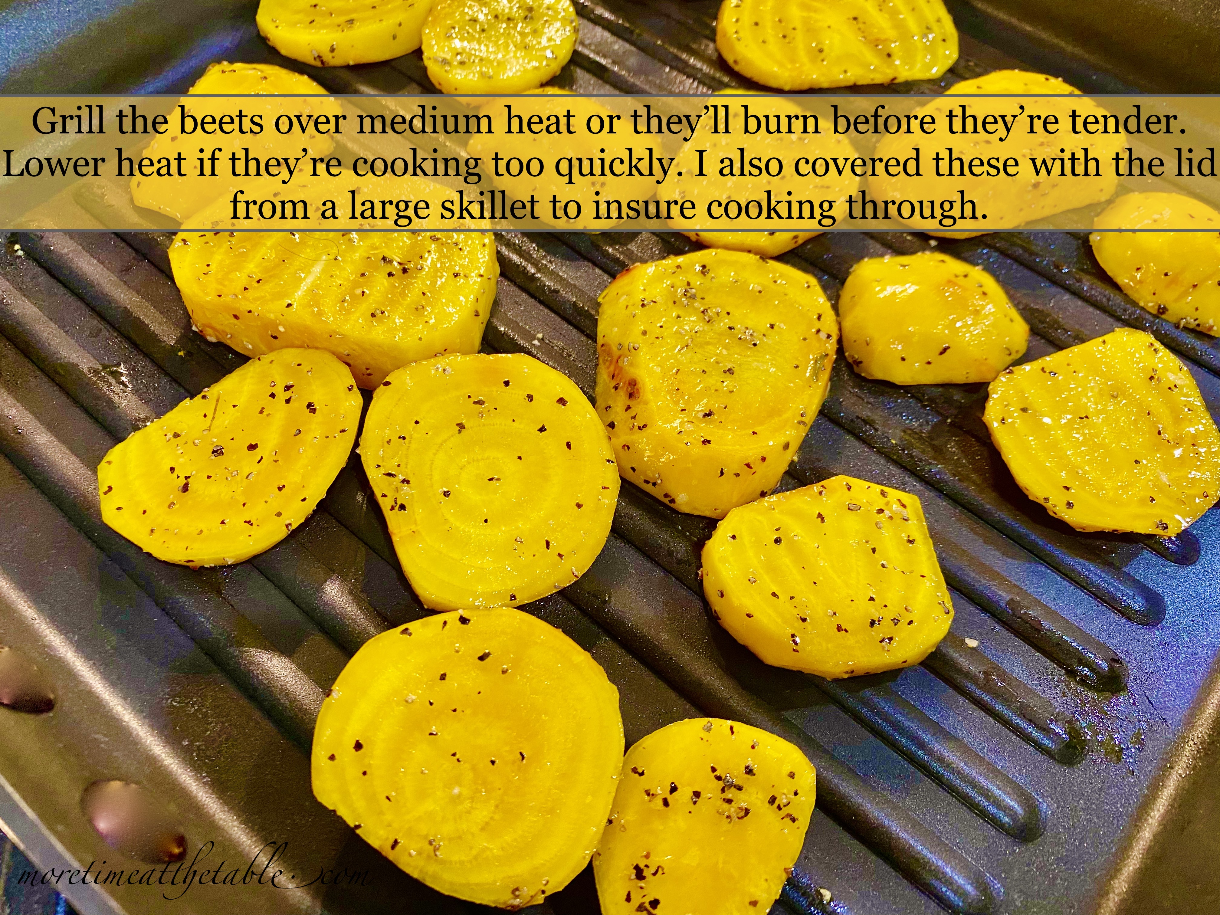 - Have no grill inside or outside? You can cook these beet slices in a large skillet. (Consider buying a stovetop grill if this is the case.)