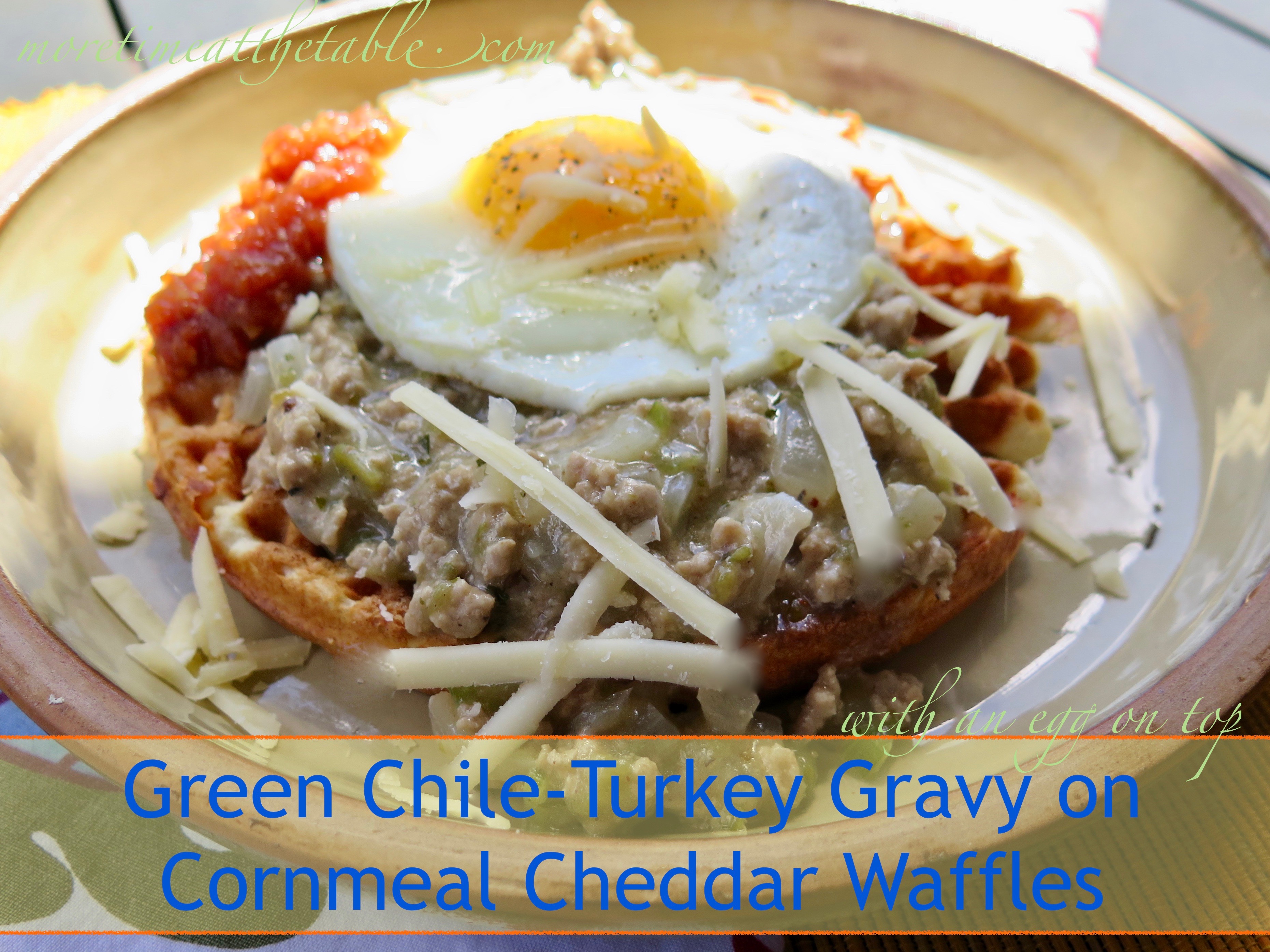 Could be you’re only familiar with our famous southwest GREEN CHILE STEW (pork or beef), but we have a gazillion other ways to eat green chiles. Burgers smothered with green chile are a big favorite in New Mexico, for instance. Here at my house, in Colorado Springs, we’re fond of my Chile-Turkey Gravy on Cornmeal Cheddar Waffles (with a fried egg.) Scroll down to OTHER INFO for more ideas about using roasted green chiles.