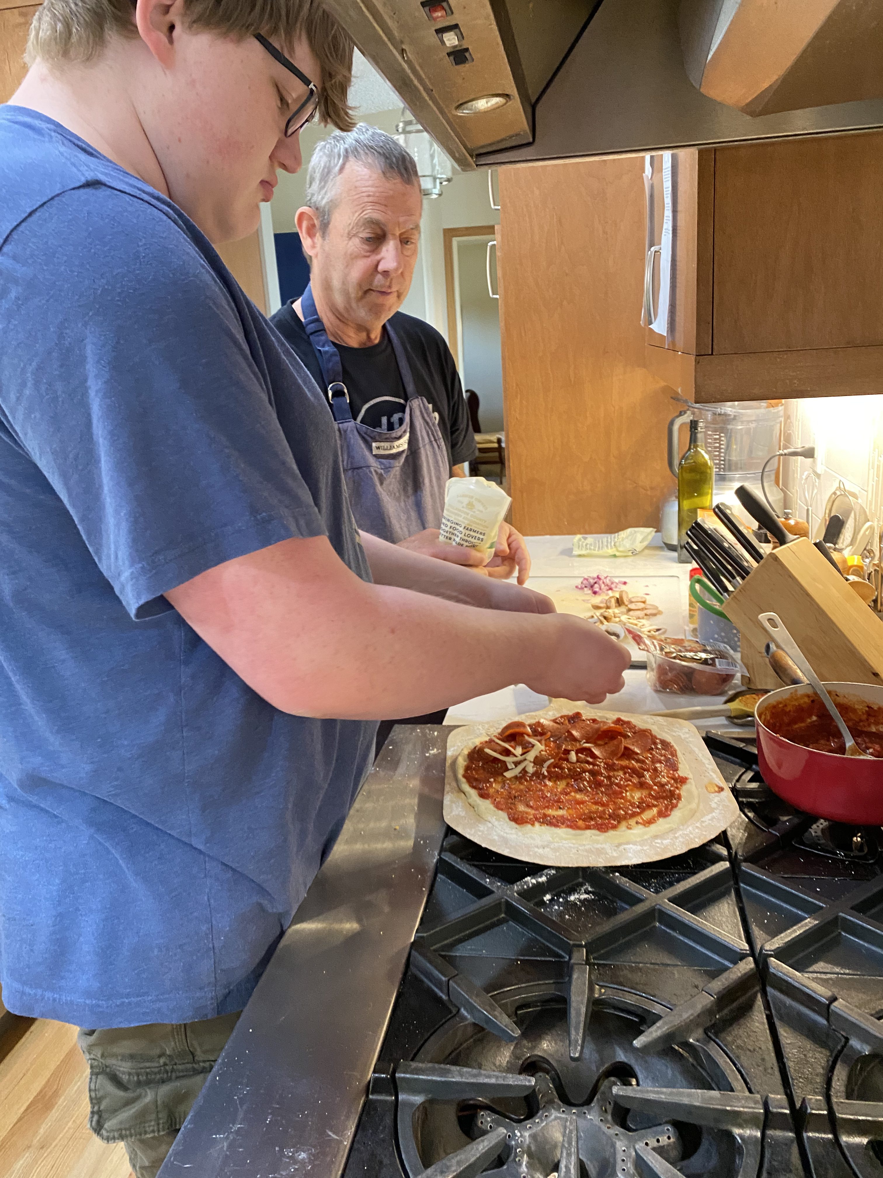 Our grandkids Piper (7) and Rhyan (17) came down with their mom Jami and made pizza with Papa on Saturday. Lovely day. There might be nothing better than this! And the smoke was gone; we ate outside. Thanks, God.