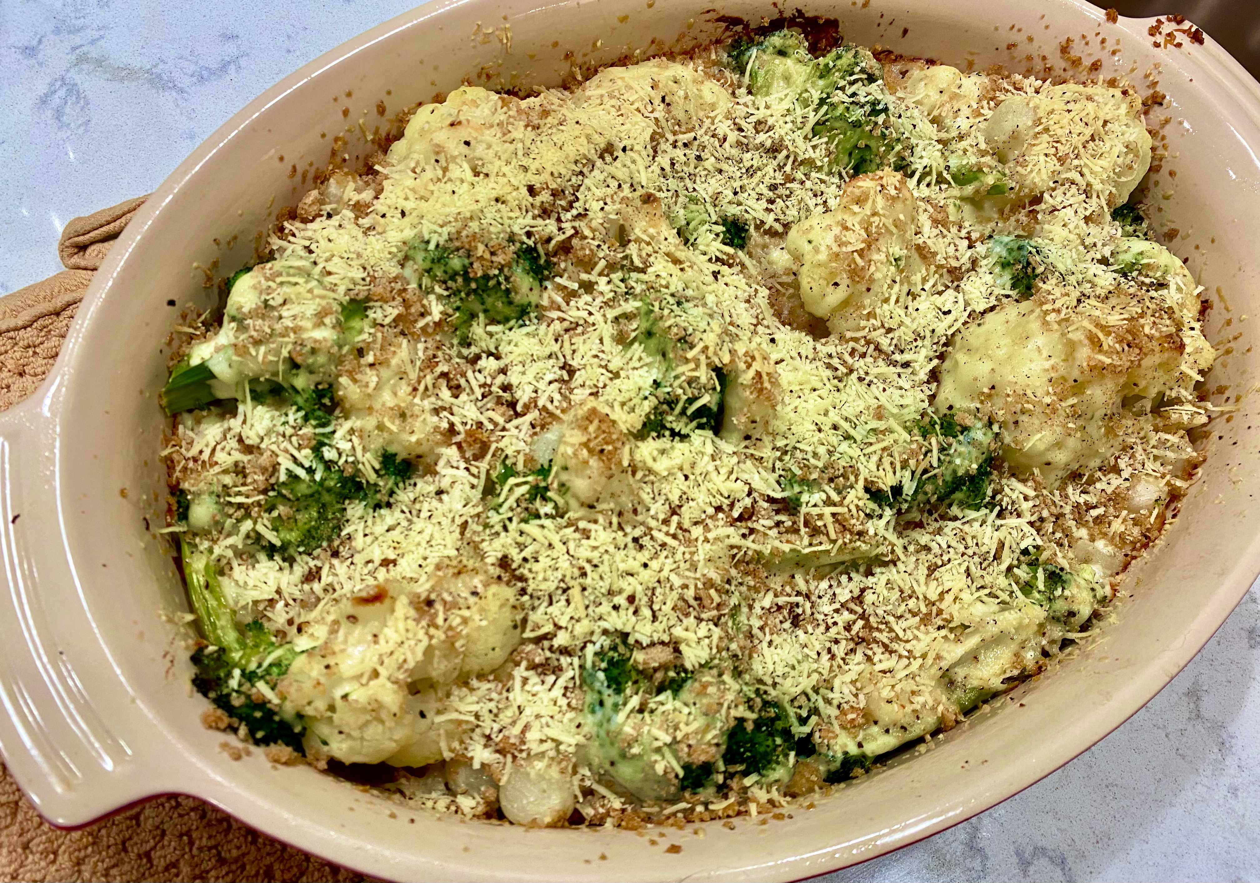 Garlic Cream Broccoli-Cauliflower Casserole
