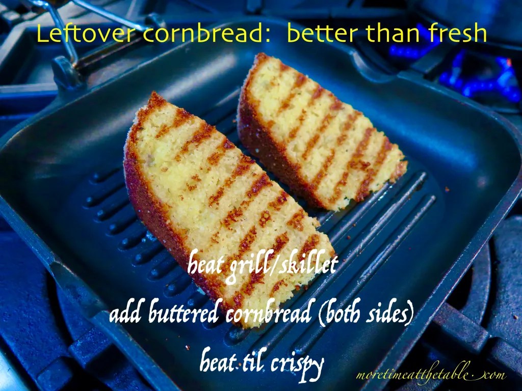 TIP: THIS WORKS FOR CORNBREAD, TOO!! If you need better leftover or even fresh cornbread, here’s your go-to: