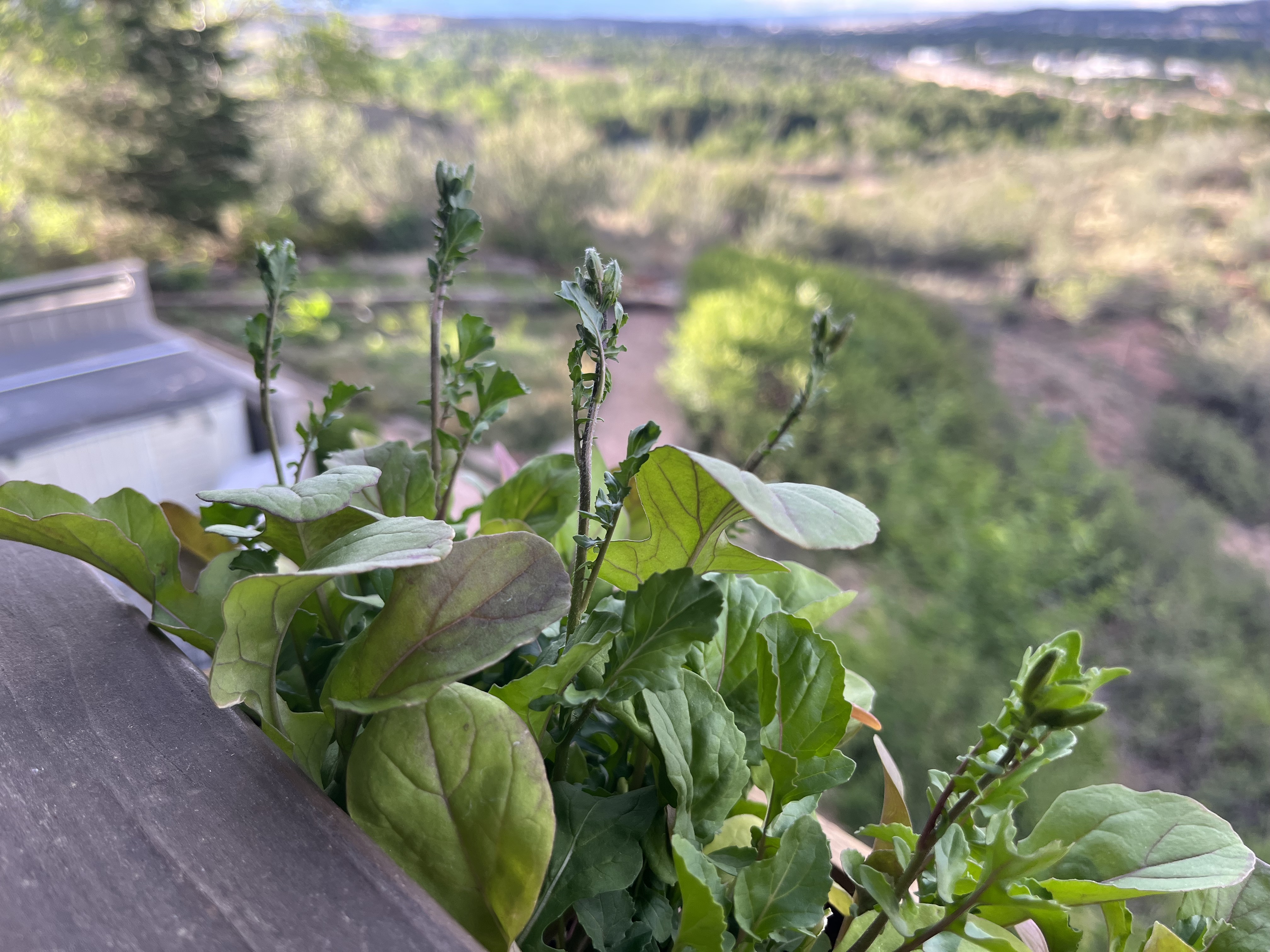 Our arugula, grown in window boxes, is flowering–time to eat quickly. The flowers are lovely and edible, too. You can eat most herb flowers and while they’re beautiful on food, they may be more strongly flavored than the leaves.