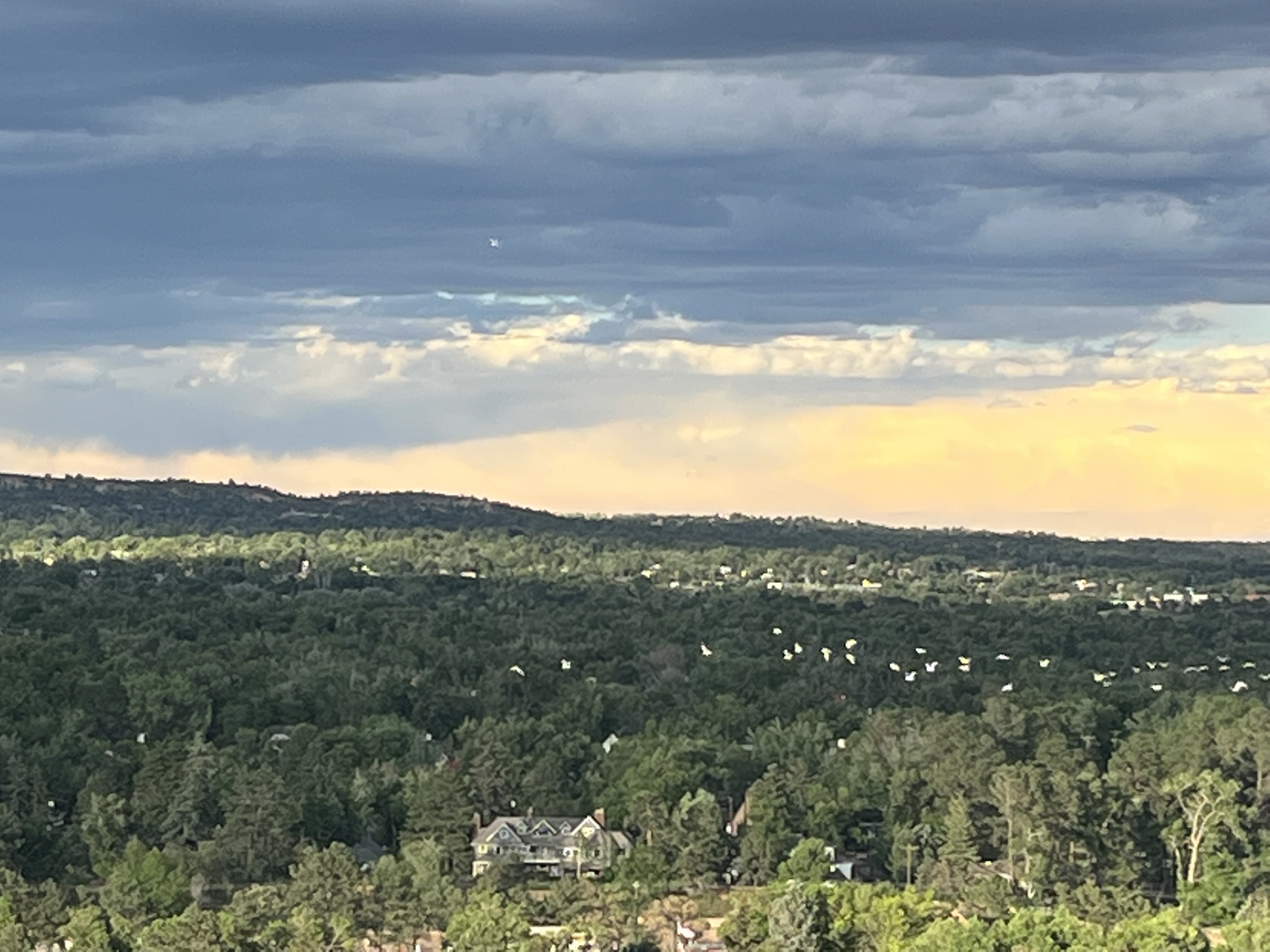 The weather hasn’t cooperated every night, but we’ve spent some evenings sharing dinner on the deck and watching the birds out over the city to the east.