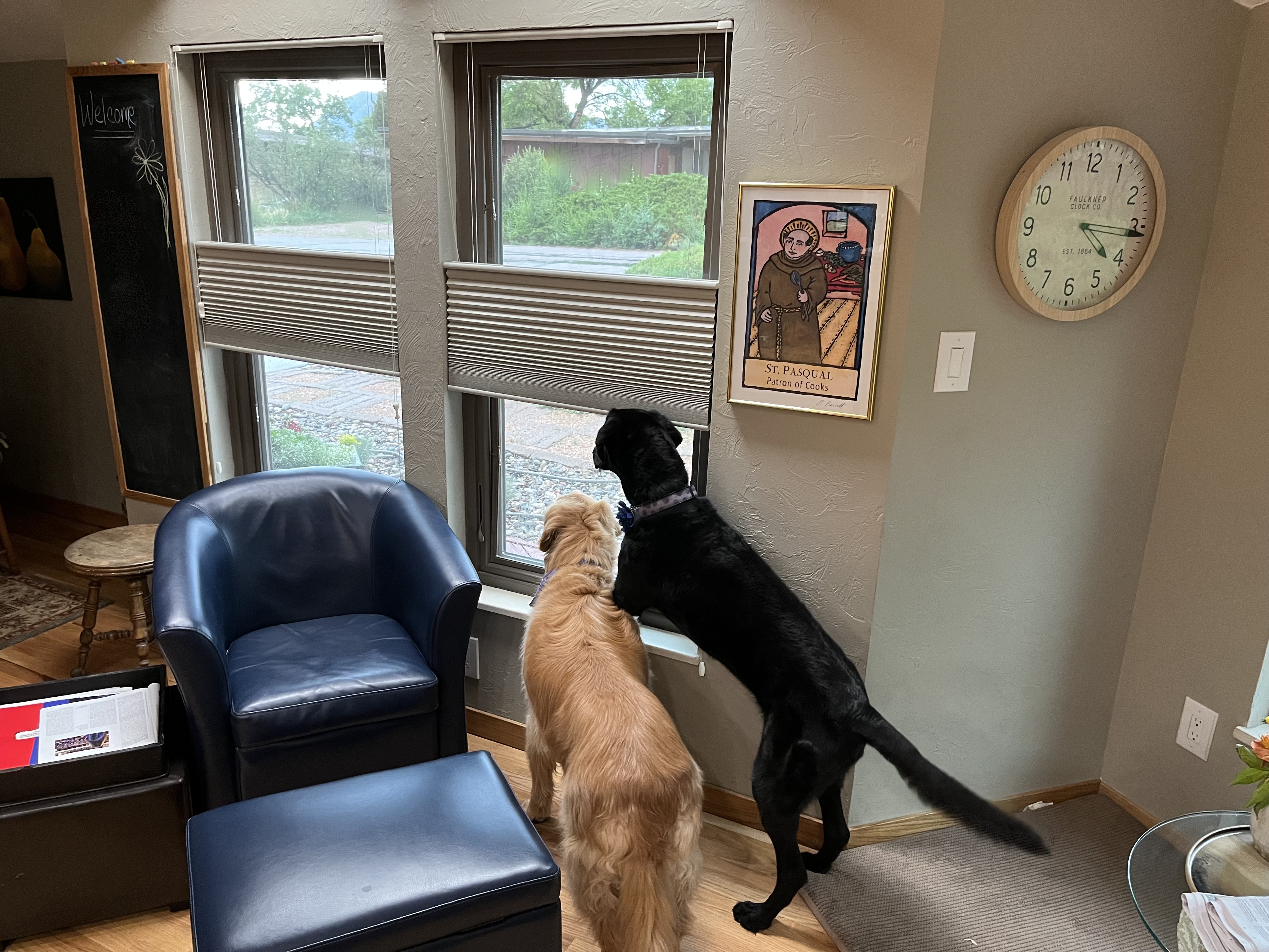 Tucker and Rosie when they hear husband Dave’s truck turn the corner….