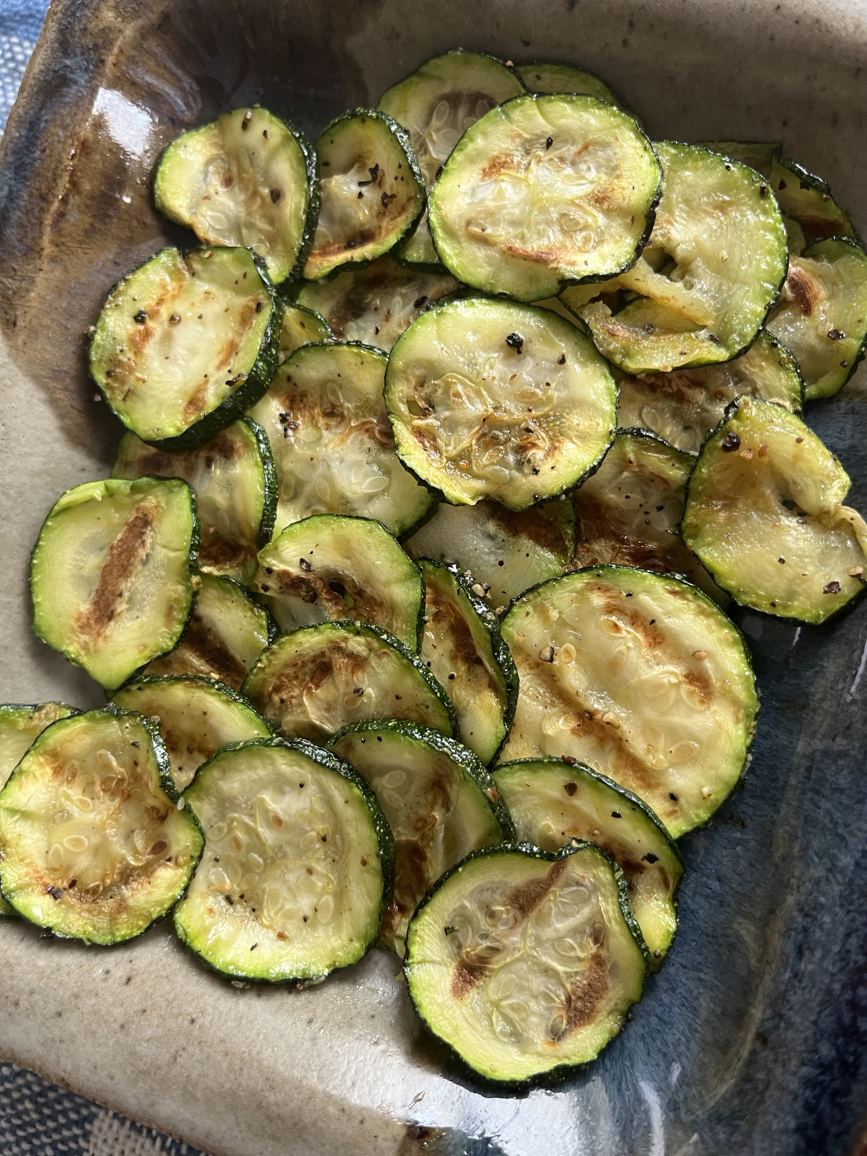 -A cooked vegetable (or two) like the eggplant sauté (recipe below), grilled thinly-sliced zucchini or yellow squash, grilled asparagus or green beans, grilled peppers (sweet or hot), sautéed mushrooms, or…