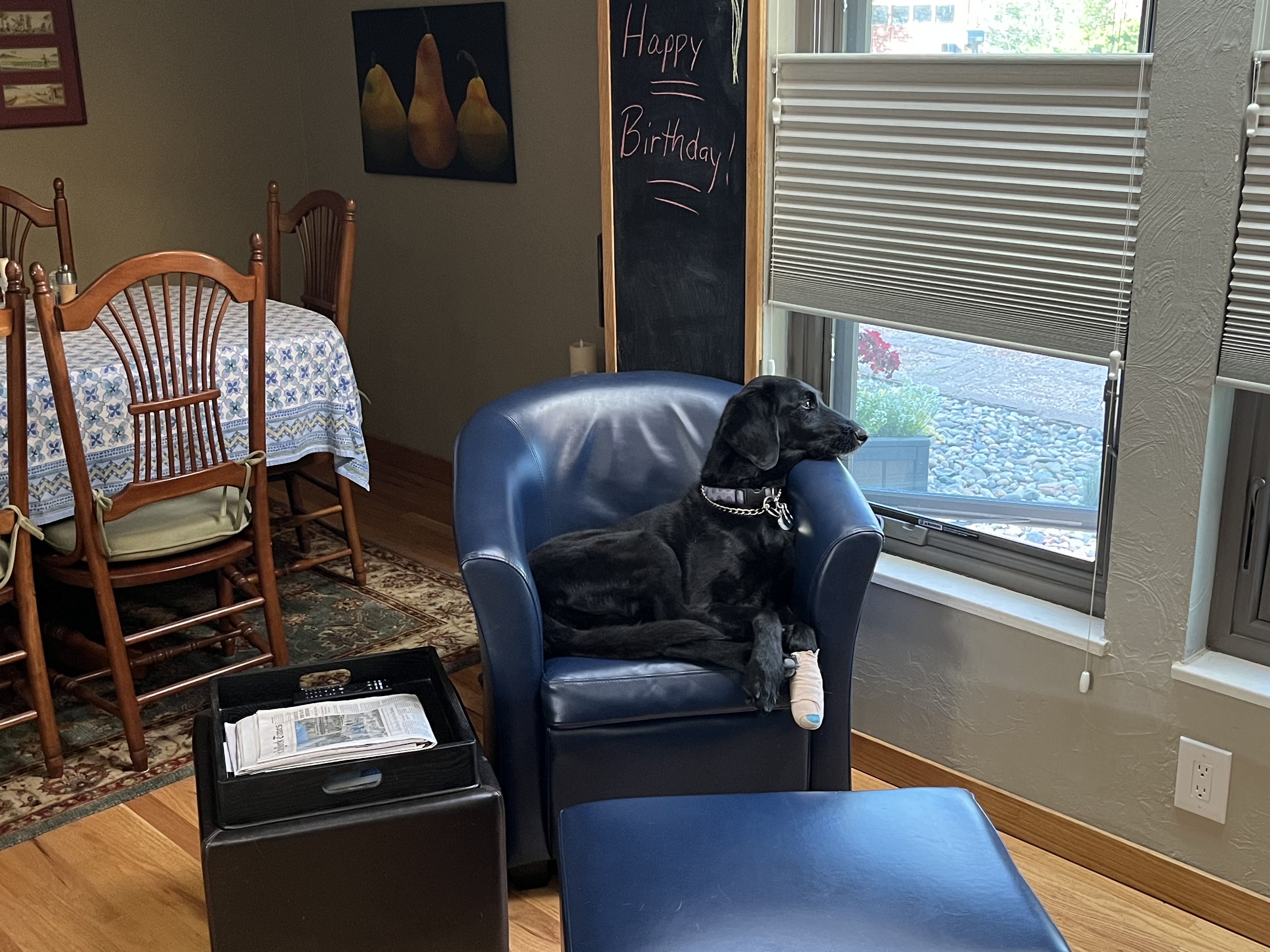 Speaking of Rosie (8-year old labradoodle), she’s a little shaky right now after a couple of her nails split badly and had to be professionally pedicured, shall we say, by the vet. Only very short walks right now, she’s been on pain killers and antibiotics for a week. And lest she think that’s been a PITA (pain-in-the-a$$), in two weeks she’s having a few teeth pulled. Ouch.