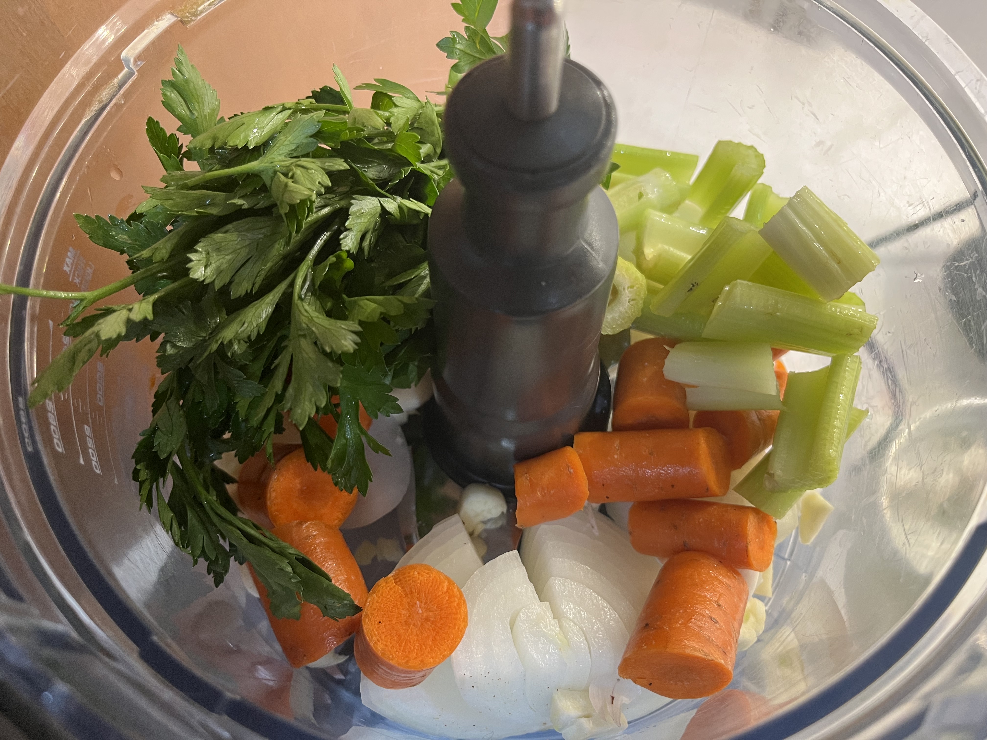 - 2 EACH: medium unpeeled carrots and stalks of celery, cut into small dice