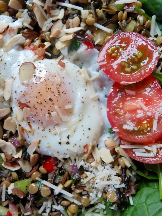 Lentil and Wild Rice Salad with Poached Eggs