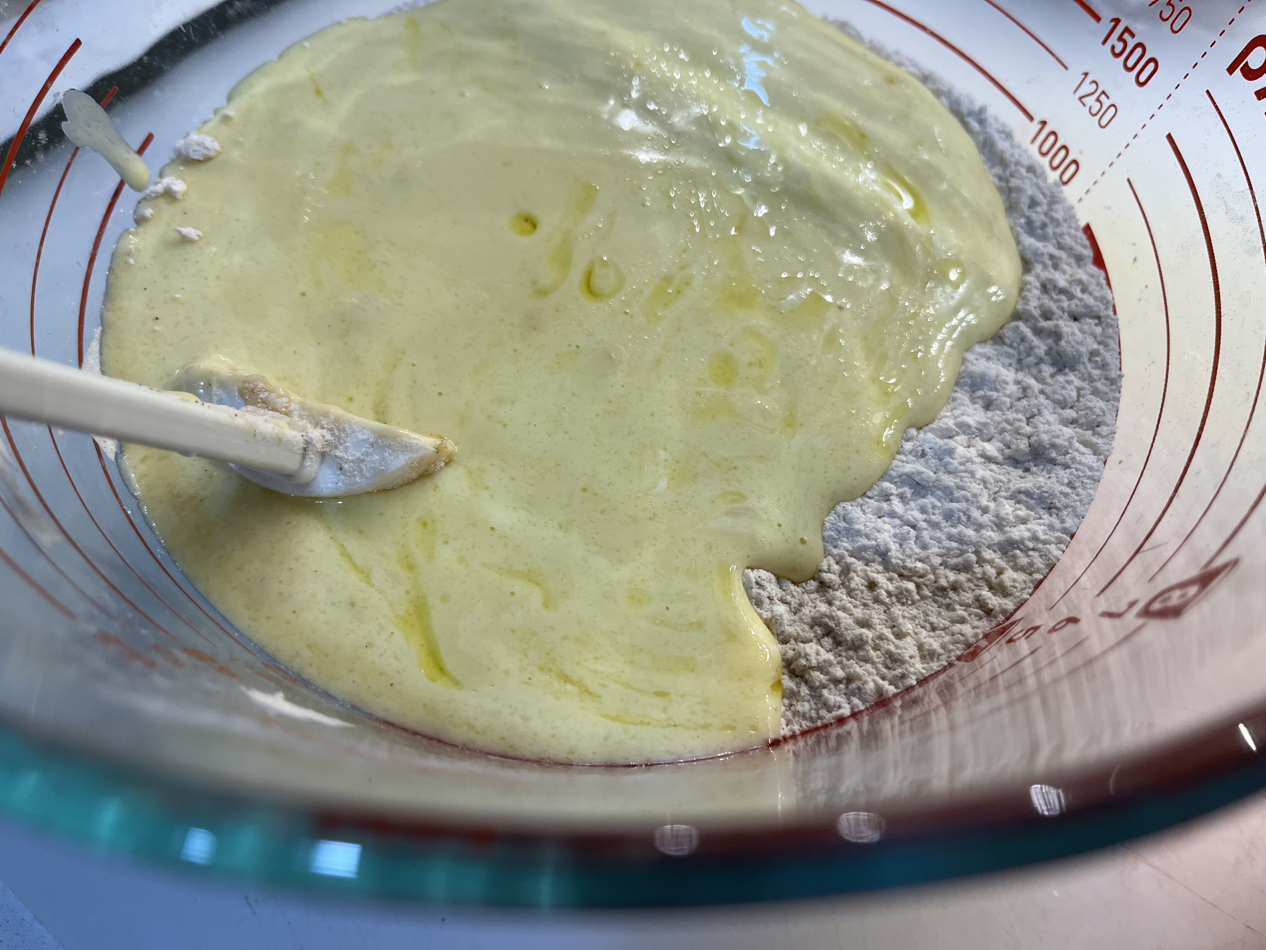 - ADD THE YOGURT MIXTURE to the flour mixture and stir until just combined.