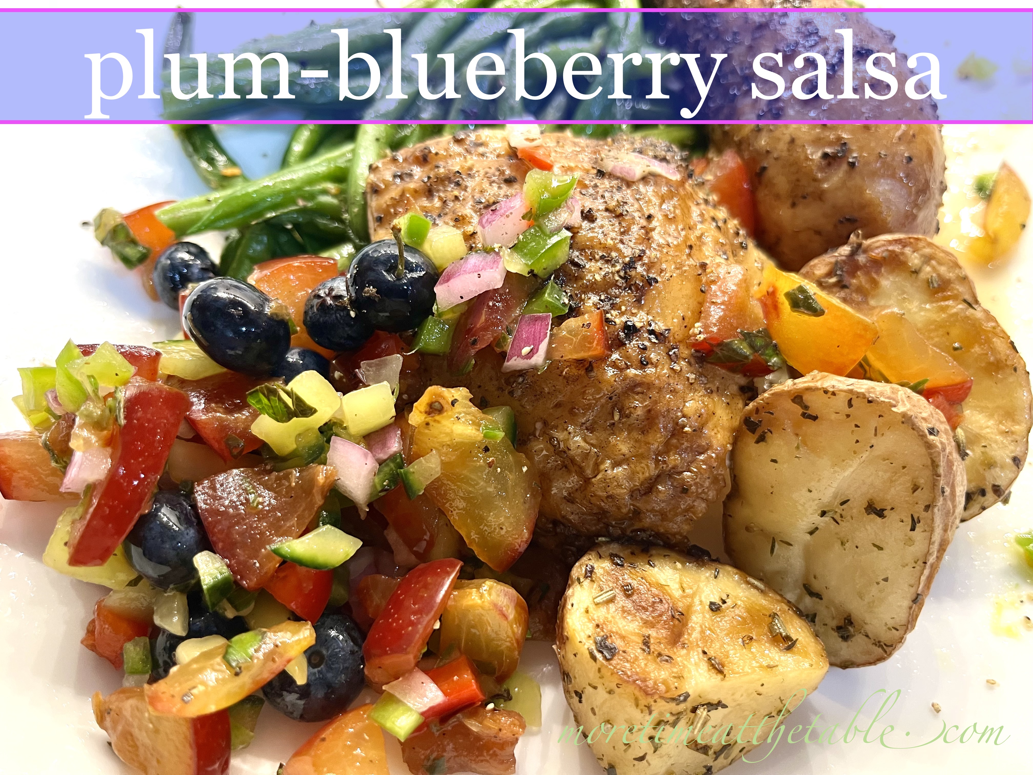 - As noted above, sub peaches or mango for the plums. Choose diced ripe strawberries –or blackberries or raspberries — instead of blueberries.