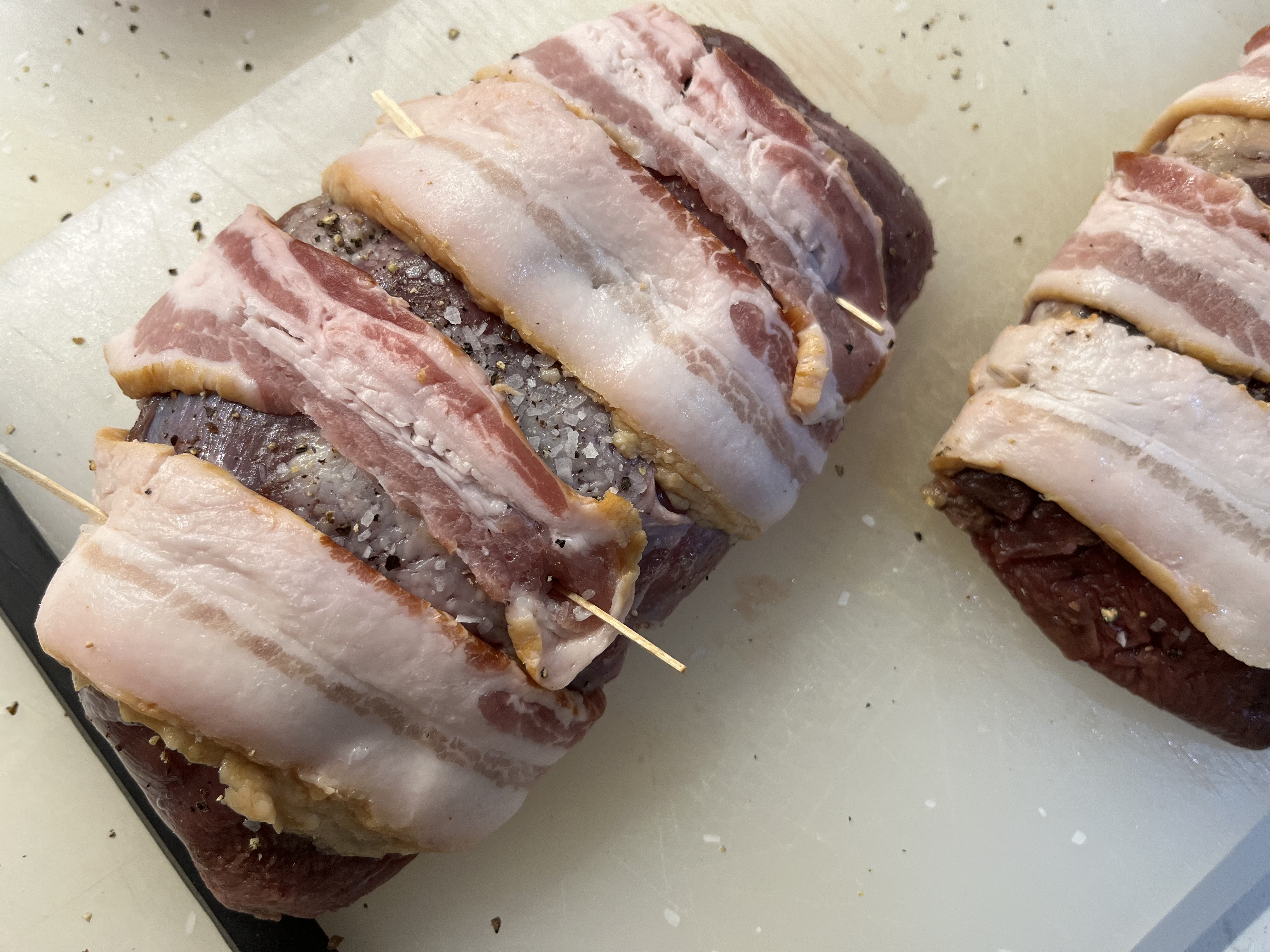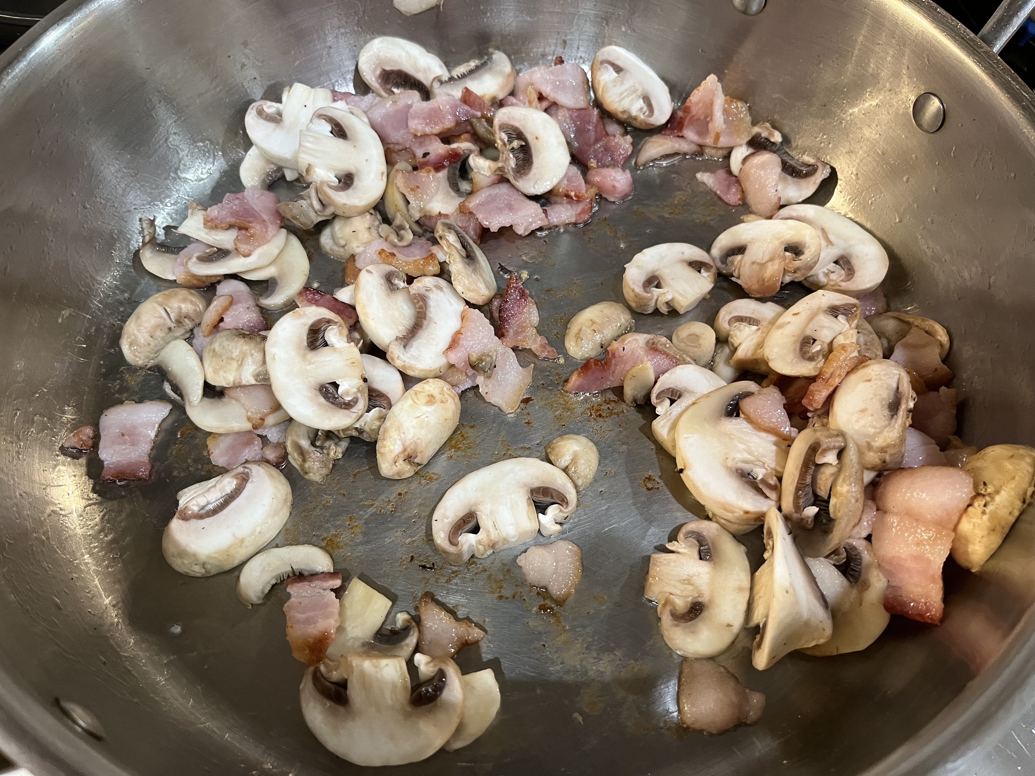 - 8 pieces thick bacon–4 left whole for the goose and 4 diced for the sauce