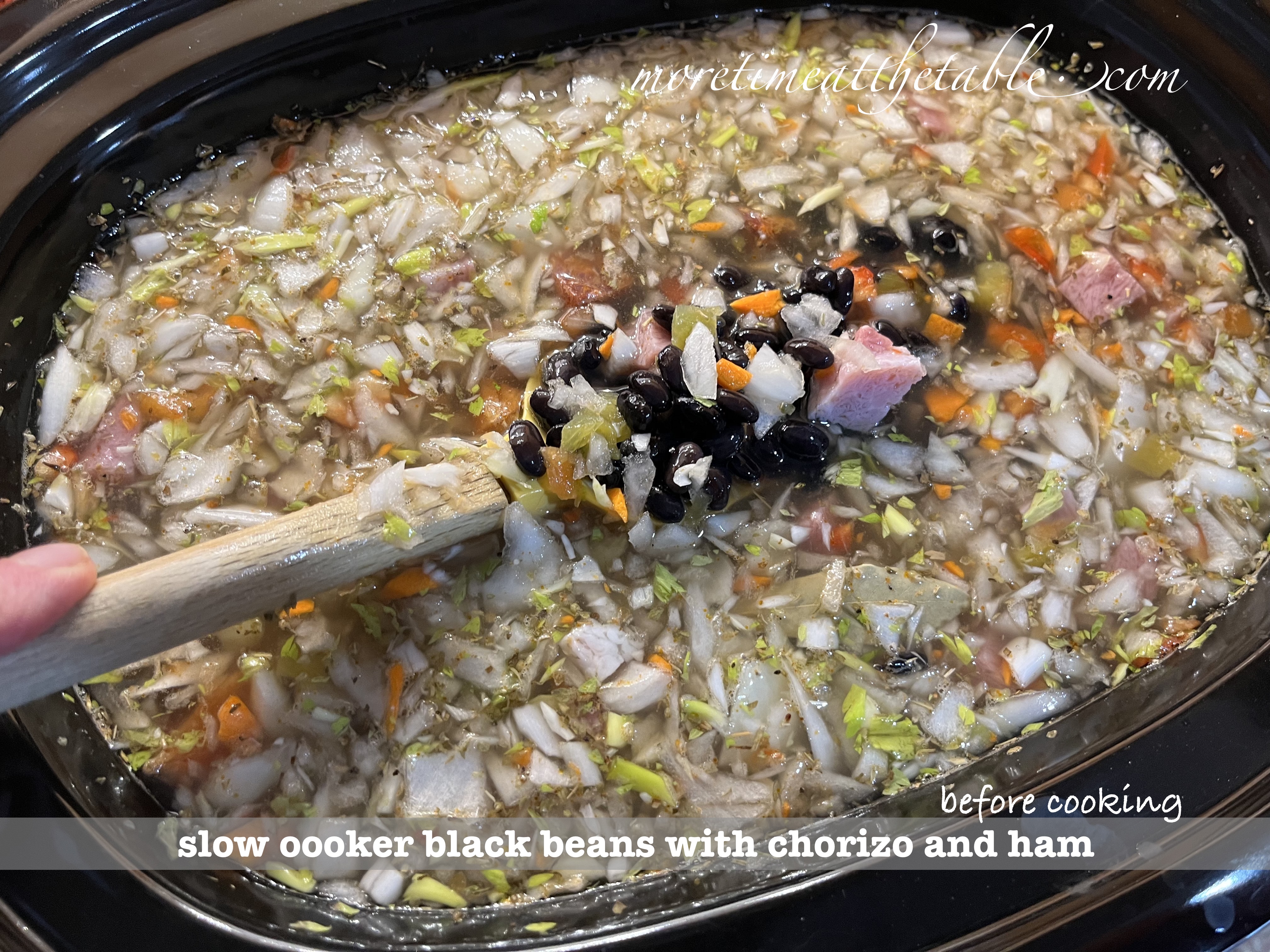SLOW COOKER Black Beans with Chorizo and Ham