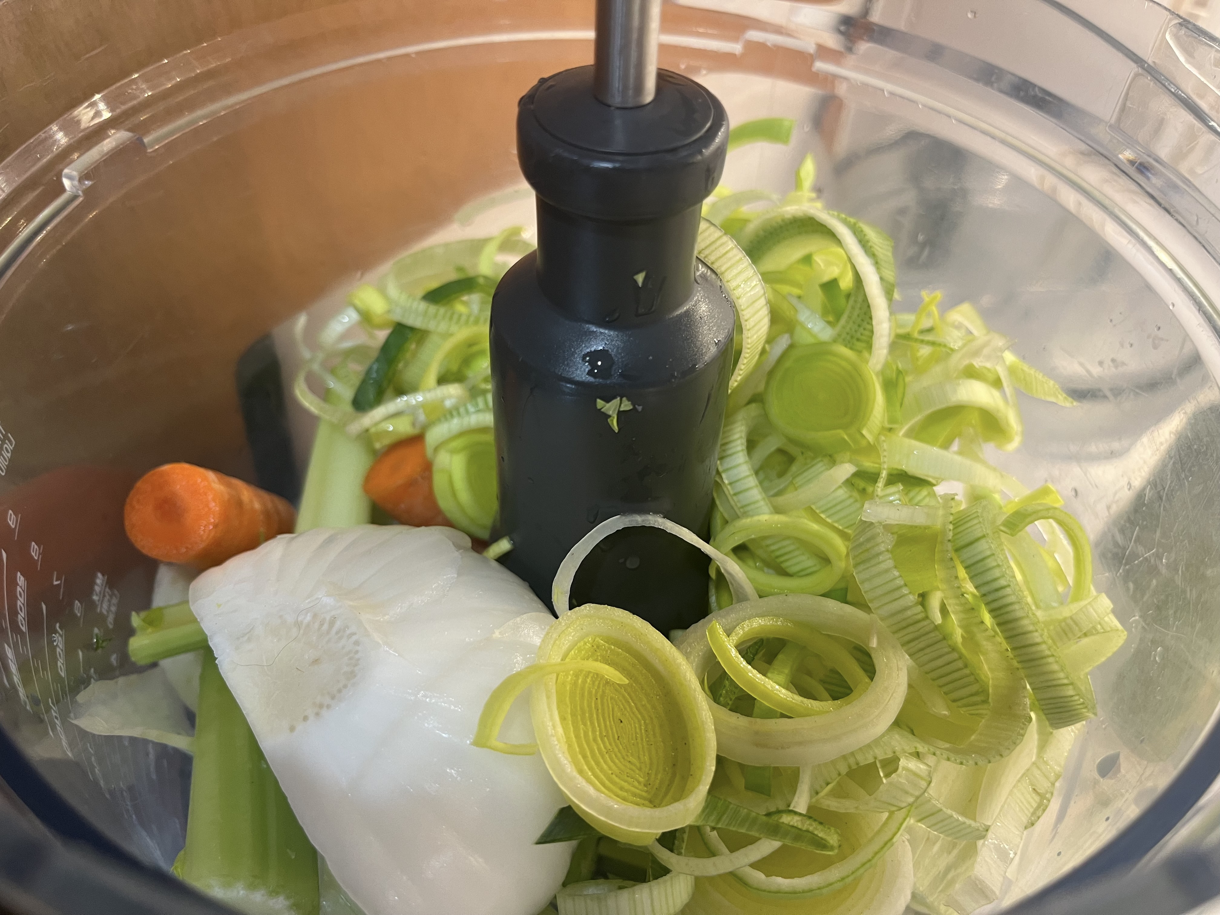 - 1 EACH: medium carrot, celery stalk, large leek (white and light green parts only, sliced), small fennel bulb–cut into medium-dice