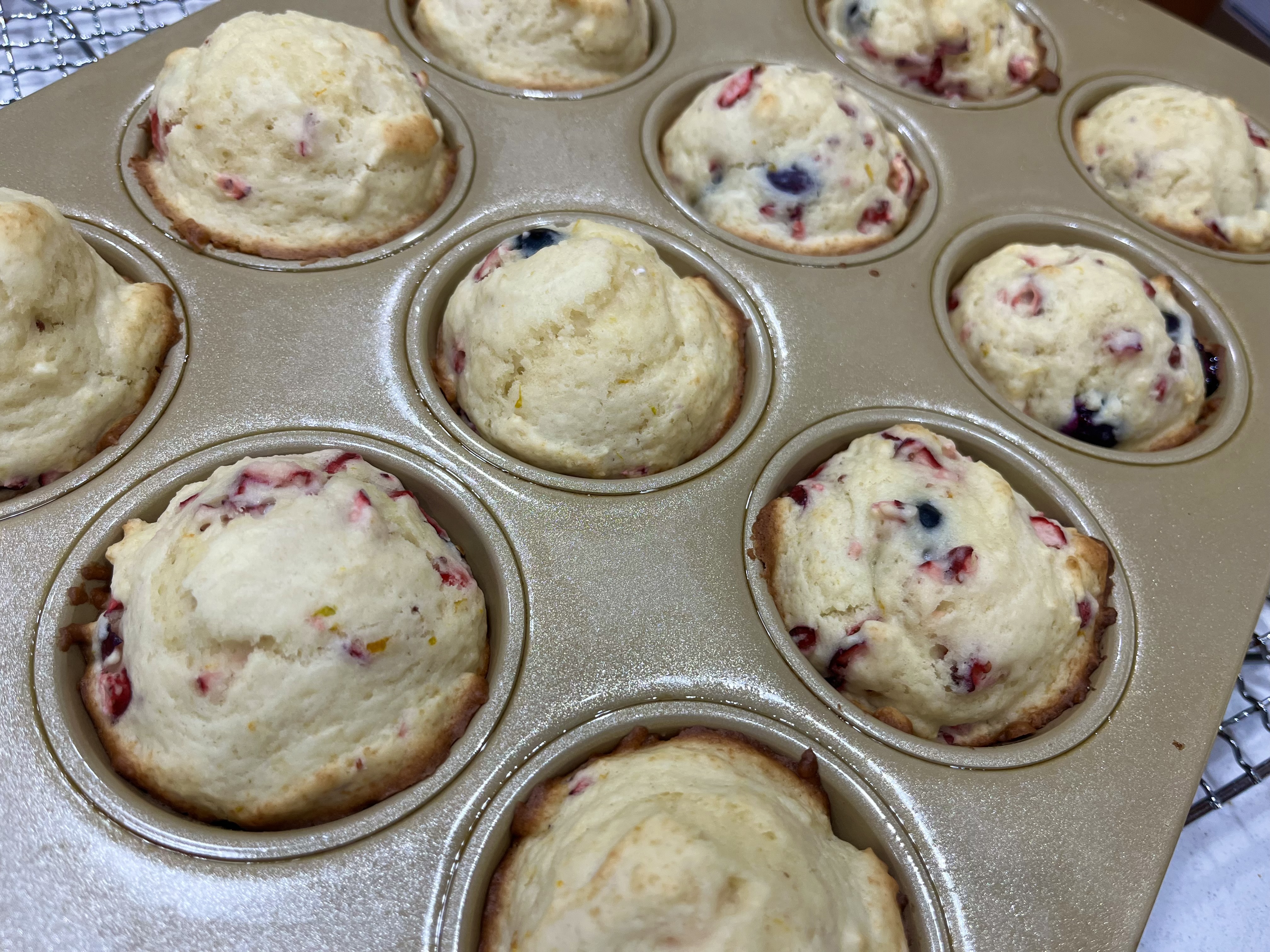 (Note: the muffins below had all of the fruit stirred into the batter.)
