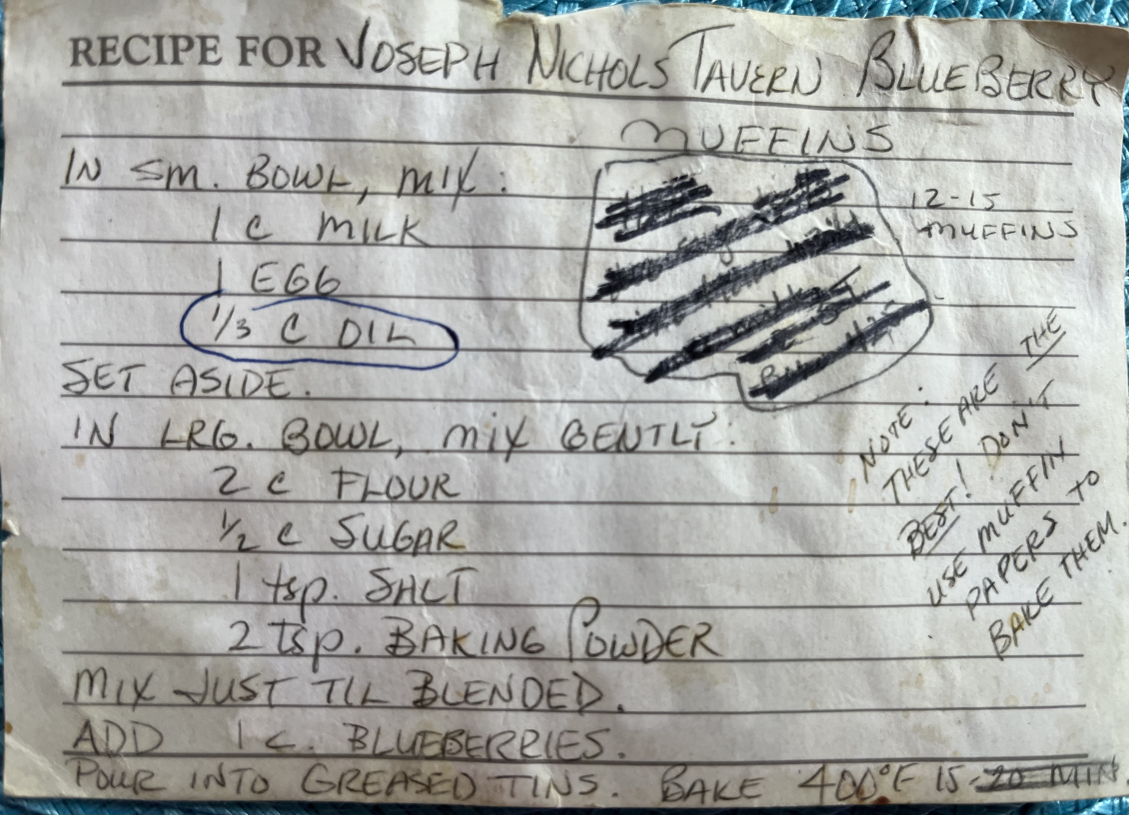A note about Joseph Nichols Tavern: When I googled that name for many years, I came up with not much. Today, I find a beautiful photo of the brick, Federal-style tavern (later known as The Western Hotel) in Lynchburg, Virginia. I’m guessing it was once happily serving blueberry muffins to adoring crowds. Anyone in Virginia remember?