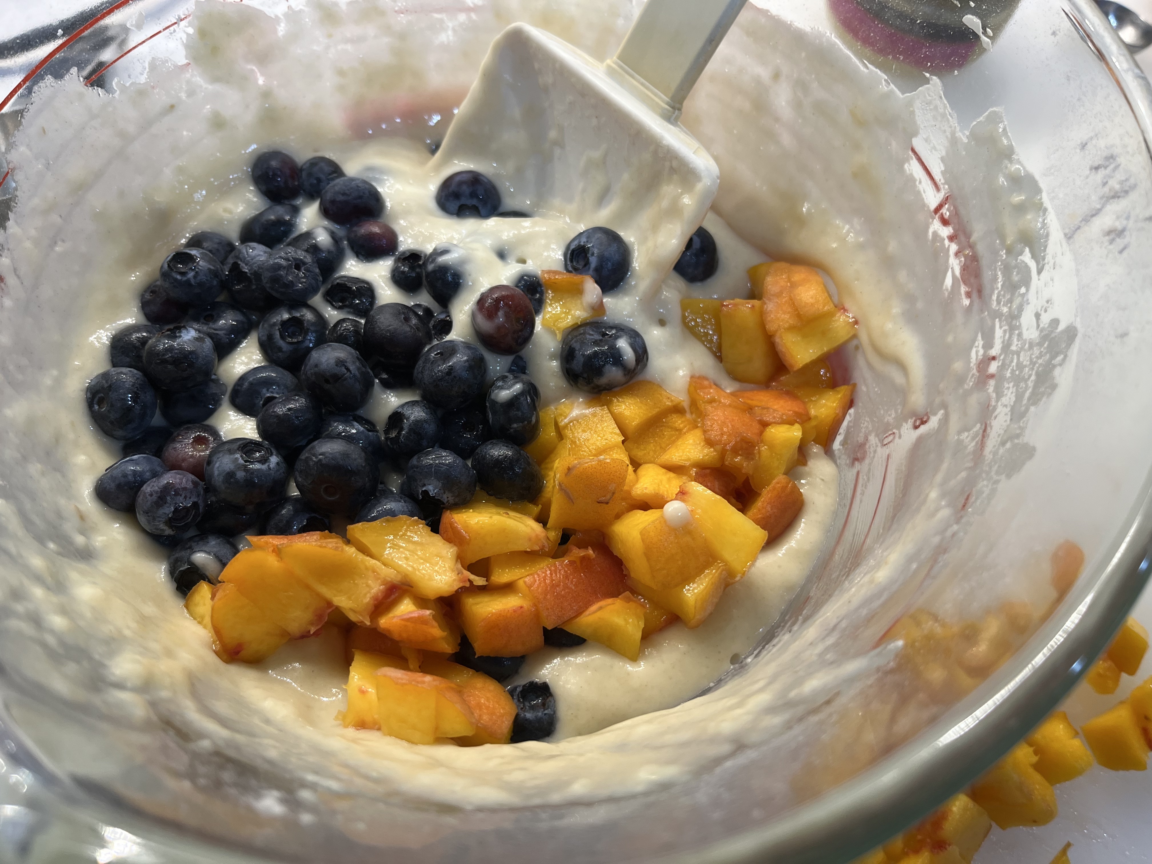 - 1 cup (140 grams/5 oz) peeled, pitted, and chopped fresh Colorado peaches (I used two small ripe, unpeeled peaches, chopped into 1/2" dice. You can substitute any other peaches for our beautiful Colorado fruit, should it not be available!)