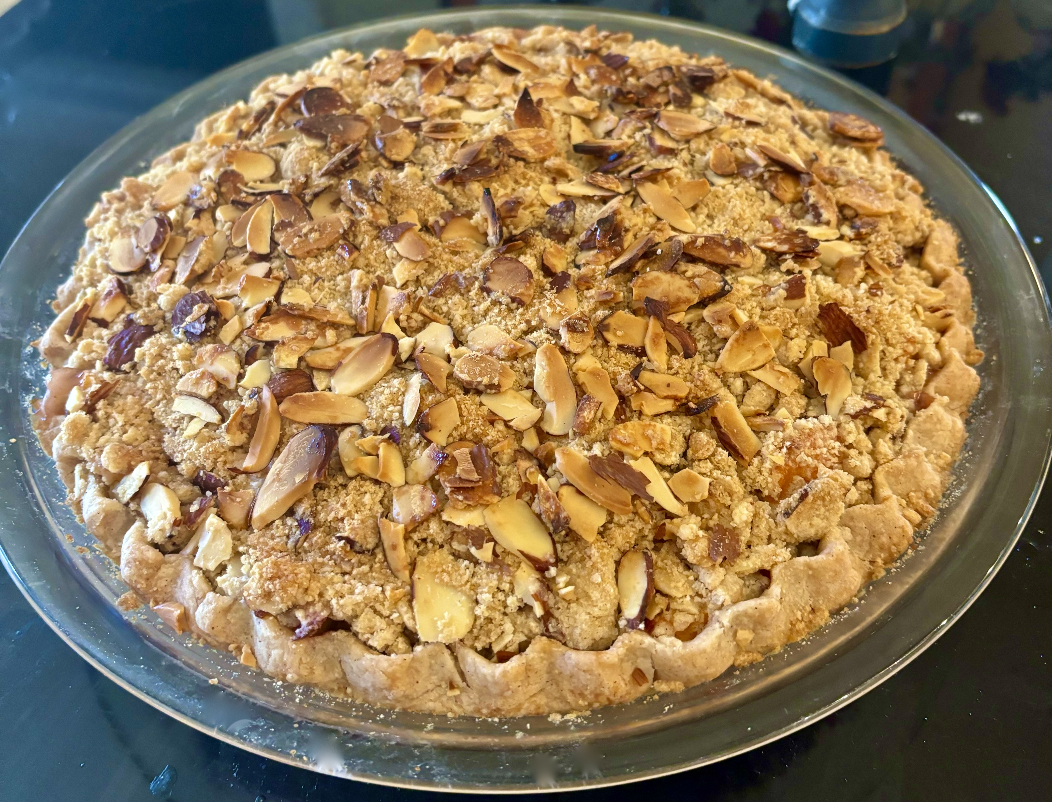 CRUMB-TOPPED PIES: What’s their origin? Read up: “Regardless of true origin, Dutch apple pie, a tasty treat”— “Dutch” in this case is Pennsylvania Dutch or (Deutch) German. A true Dutch apple pie (appeltaart) is something very different indeed, as any Dutch baker would tell you.