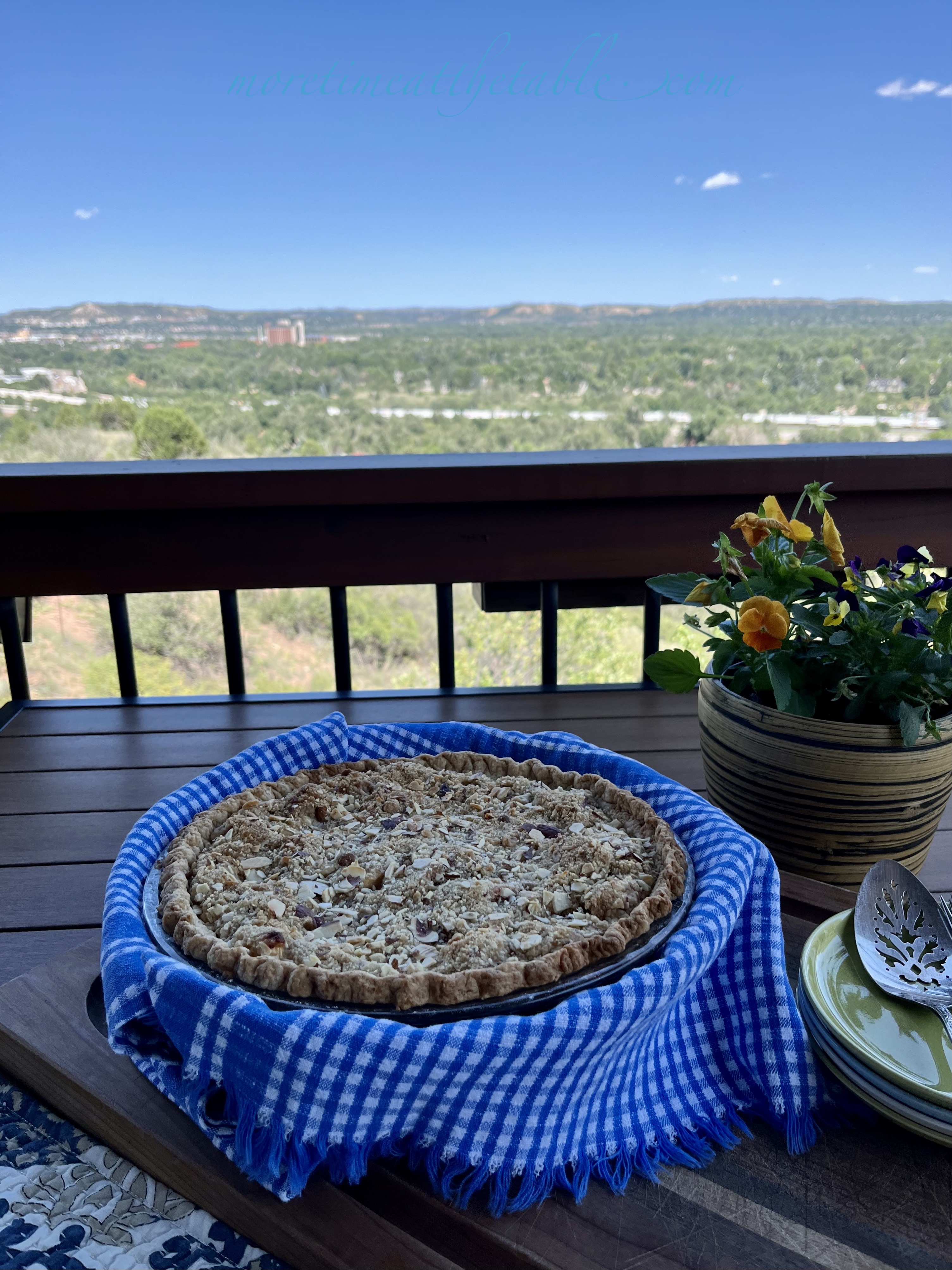 BELOW: Here’s a photo of the beautiful pie baked by my dear friend, caterer and cook extraordinaire, Patti White. This version is made with gluten-free crust, by the way: