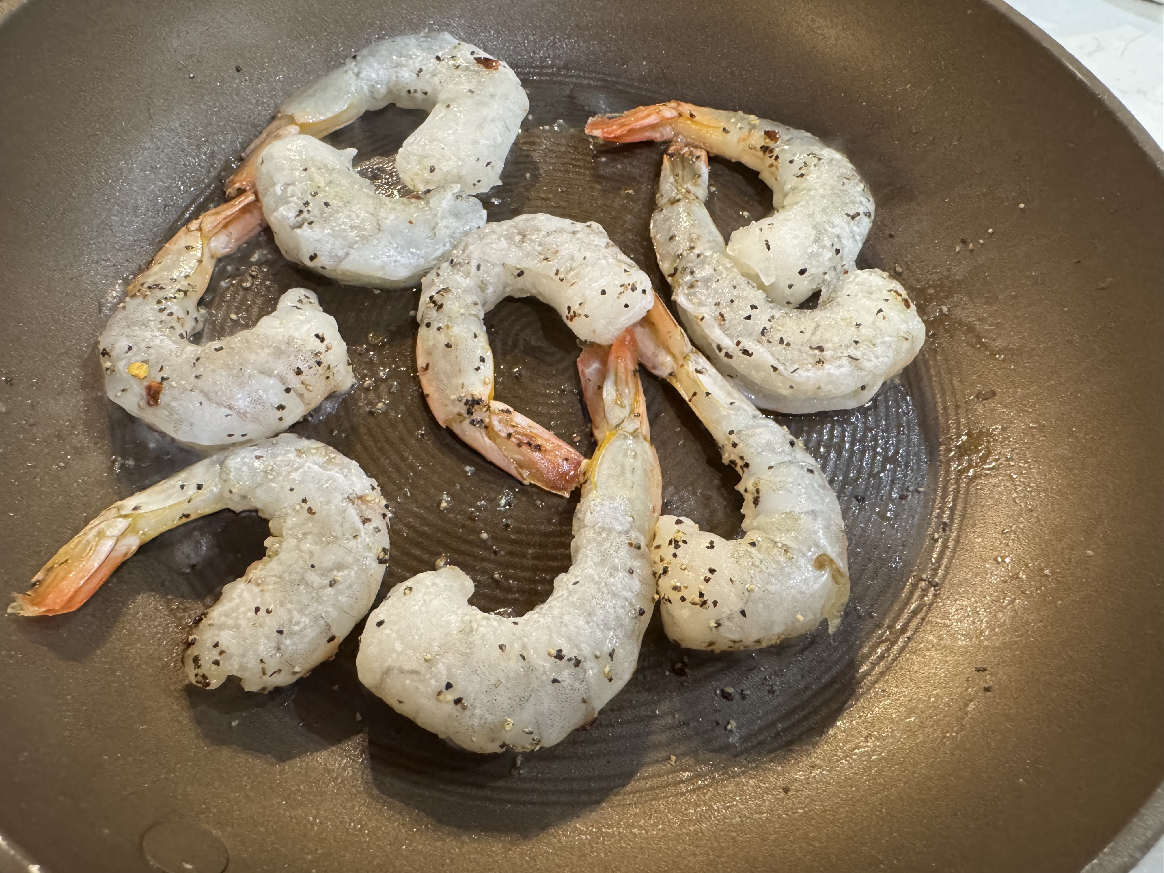 - 8-10 large, cooked shrimp (approx. 1/3 pound) (See blog for cooking ideas.)