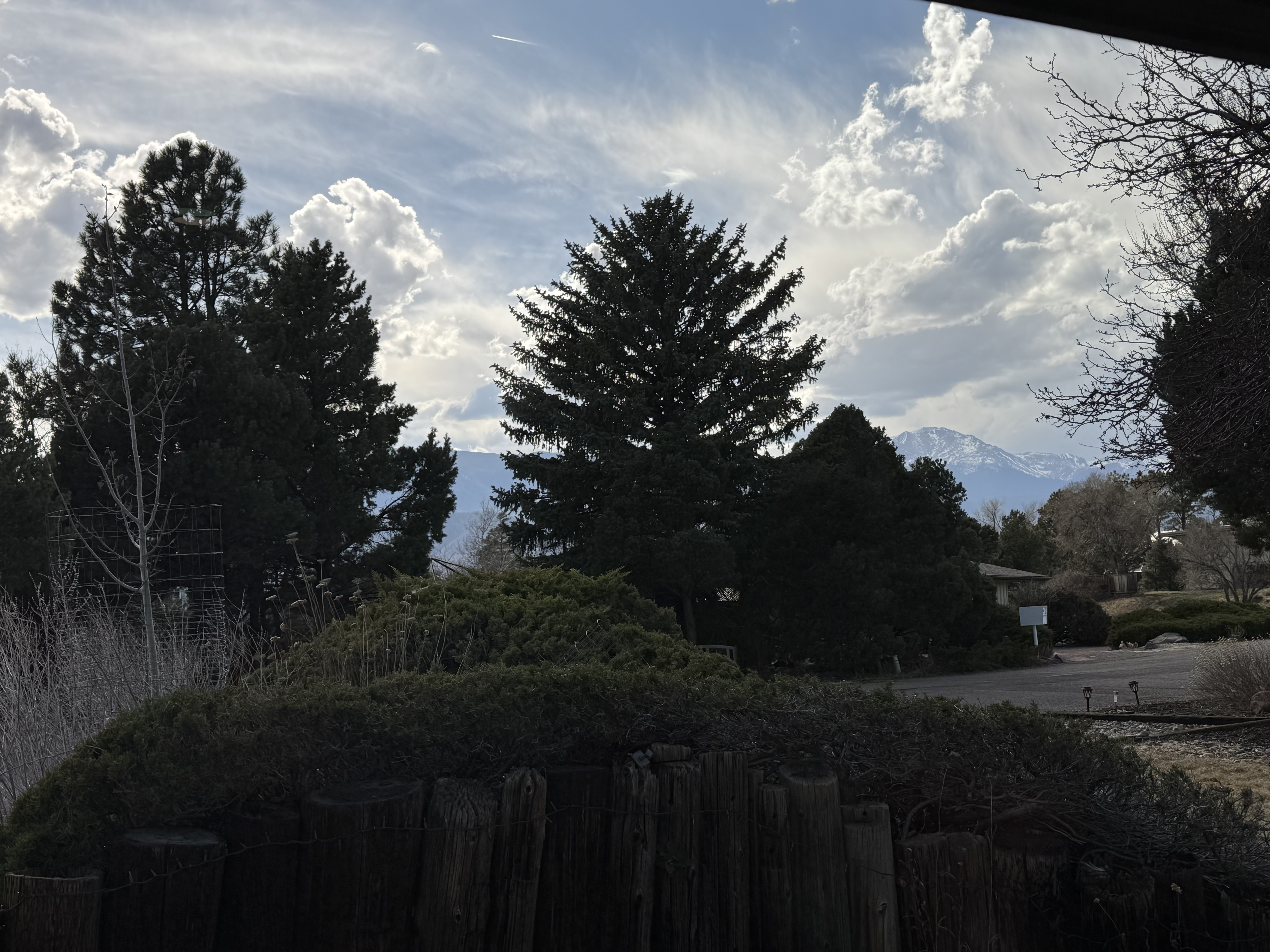 above: There are days when there’s nothing better on earth to see but the sky right outside your own house. As spring begins, house finches are nesting on the front porch and spotted towhees begin their months’ long mating calls in the tall trees on our south side. We even had a little rain!
