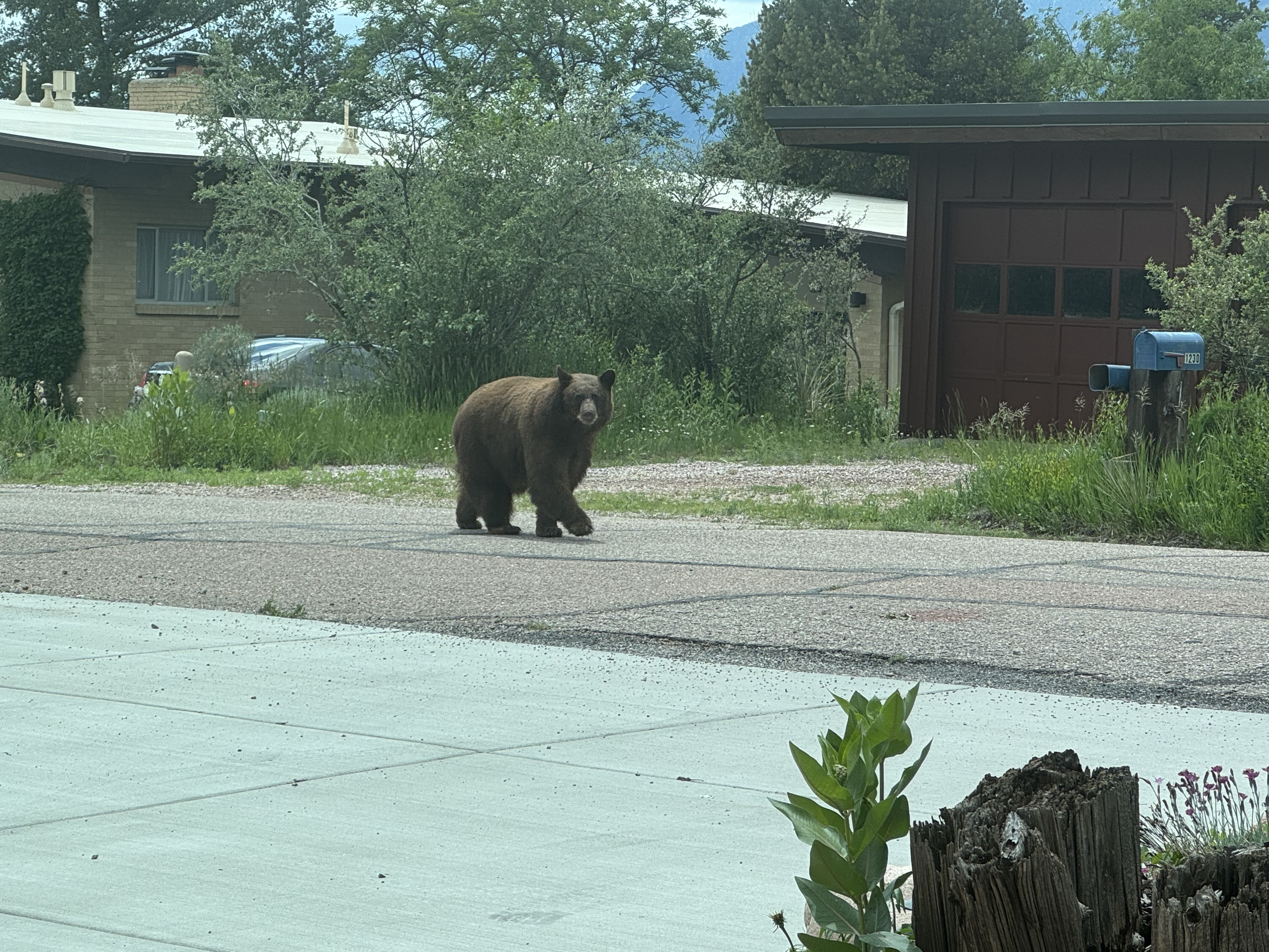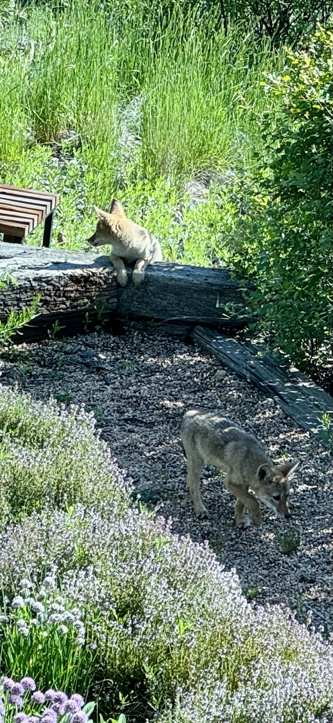 below: Our local coyote mom (who has 6 pups) was after the bear cubs. Weird stuff. Babies must be hungry for her to chase bear. Usually plenty of mice and bunnies out there.