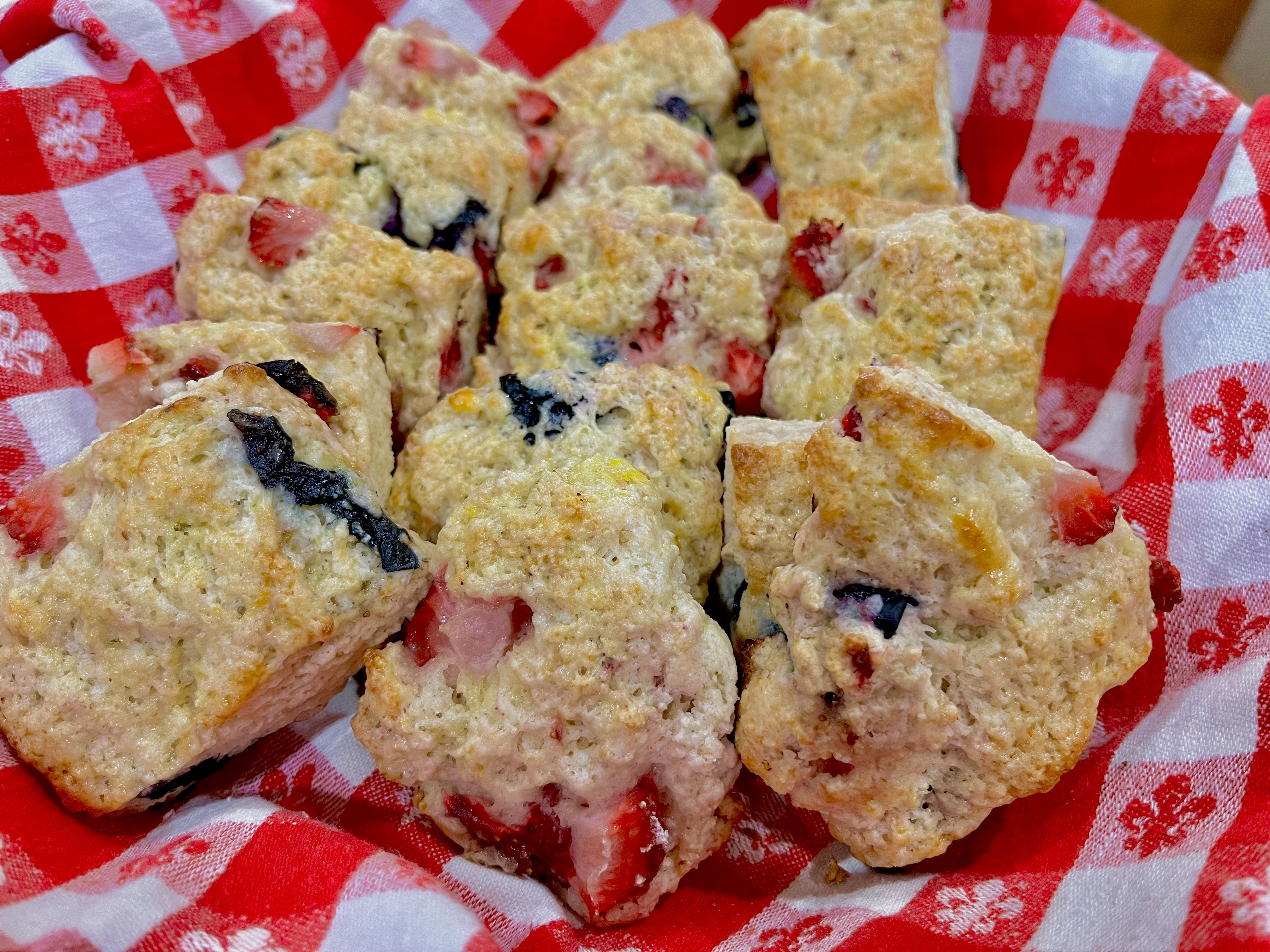 Strawberry-Blueberry Scones: this recipe,just using half strawberries