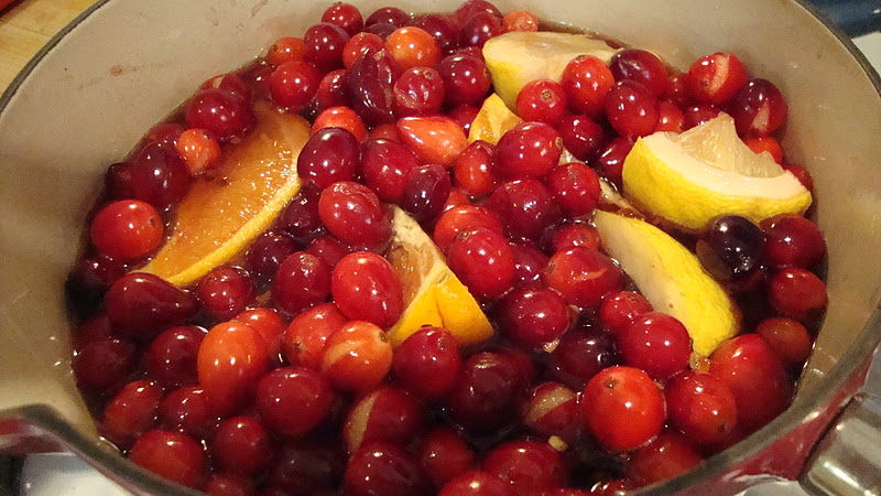In a 3 qt heavy sauce pan, place 1 pound fresh cranberries, 1/2 lemon quartered, 1/2 large apple peeled and chopped, 2 cinnamon sticks, 1/2 teaspoon crushed red pepper flakes, and 1/2 cup (or more to taste) brown sugar. Add water to cover fruit, the pour in 1/2 cup red wine. Bring to a boil, and lower heat. Simmer for about 15 minutes until cranberries pop, fruit is softened, and mixture is thick. Stir frequently and add water if it becomes too dry.