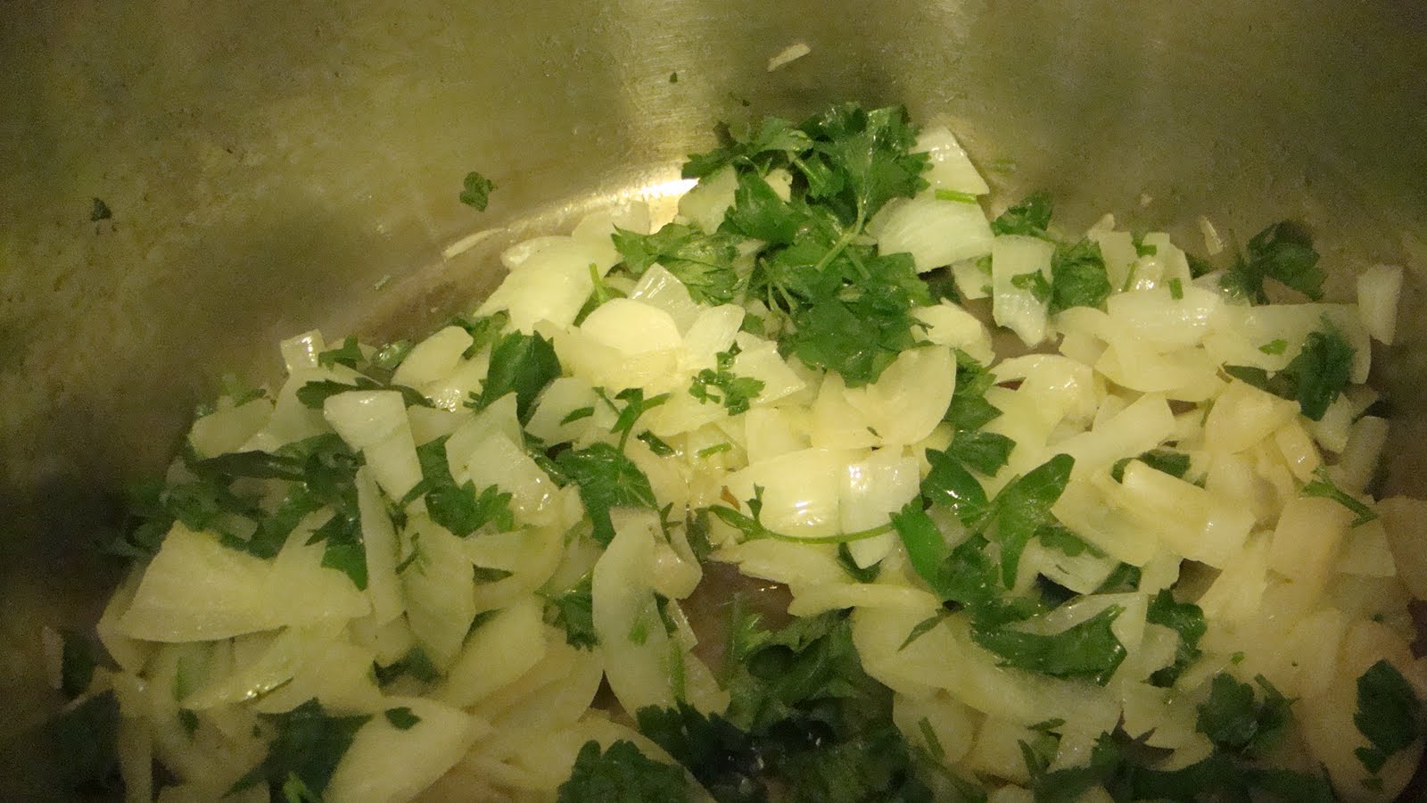 In a 4 or 6qt stockpot, heat butter or oil over medium-low, and add chopped onions and shallot. Saute about 10 minutes and then add garlic. Cook another 5 minute or until veg are very soft. Add 1/2 teaspoon kosher salt and 1/2 teaspoon fresh ground pepper, tarragon, parsley, and asparagus and let flavors marry by cooking a minute or two or three, stirring and smelling as you go. Oh, tarragon.
